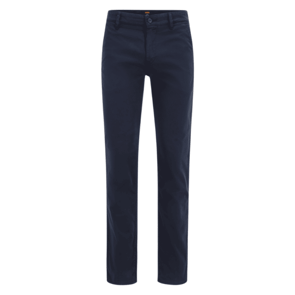 Comfortable, versatile casual chinos in easy-wear stretch cotton by BOSS Menswear. This slim-leg trouser is detailed with signature stitching and herringbone tape at the inner waistband. A reactive wash treatment and brushed finish ensure that the satin fabric is super-soft, offering everyday wearing comfort.