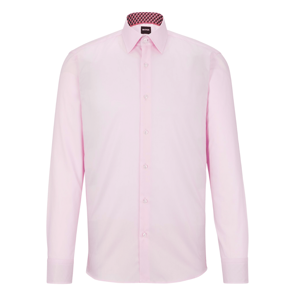 A super-soft shirt cut to a straight fit in easy-iron cotton poplin made in Austria by BOSS Menswear, featuring inner fabric contrasts. The white colourway is created using an eco-friendly process, offering colour brilliance that is enhanced wash after wash.