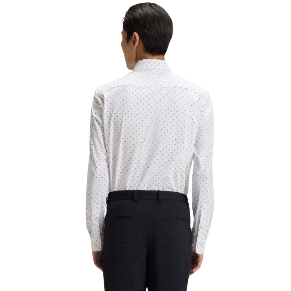 With a modern print on super-flex jersey, this BOSS Menswear white shirt will add fresh interest to casual looks. Cut to a slim fit. This product contains at least 60% better raw materials. This piece is made with at least 60% cotton derived from regenerative agriculture. Regenerative agriculture prioritizes the preservation and restoration of natural environments, aiming to enhance biodiversity, maintain water quality, and improve soil health.
