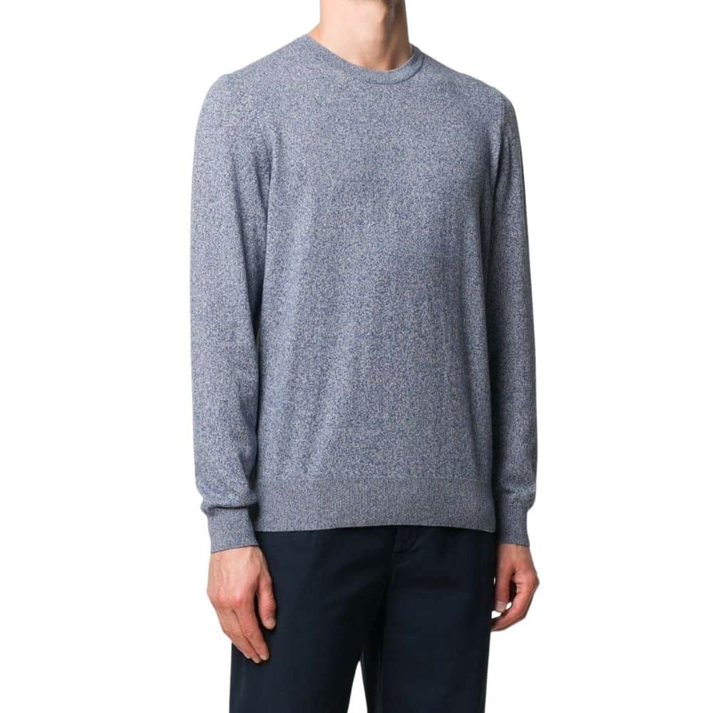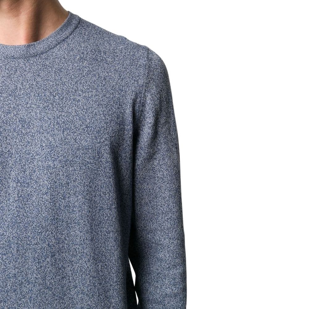 Blue speckled cotton jumper from BOSS menswear featuring a round neck, long sleeves and a ribbed hem and cuffs.