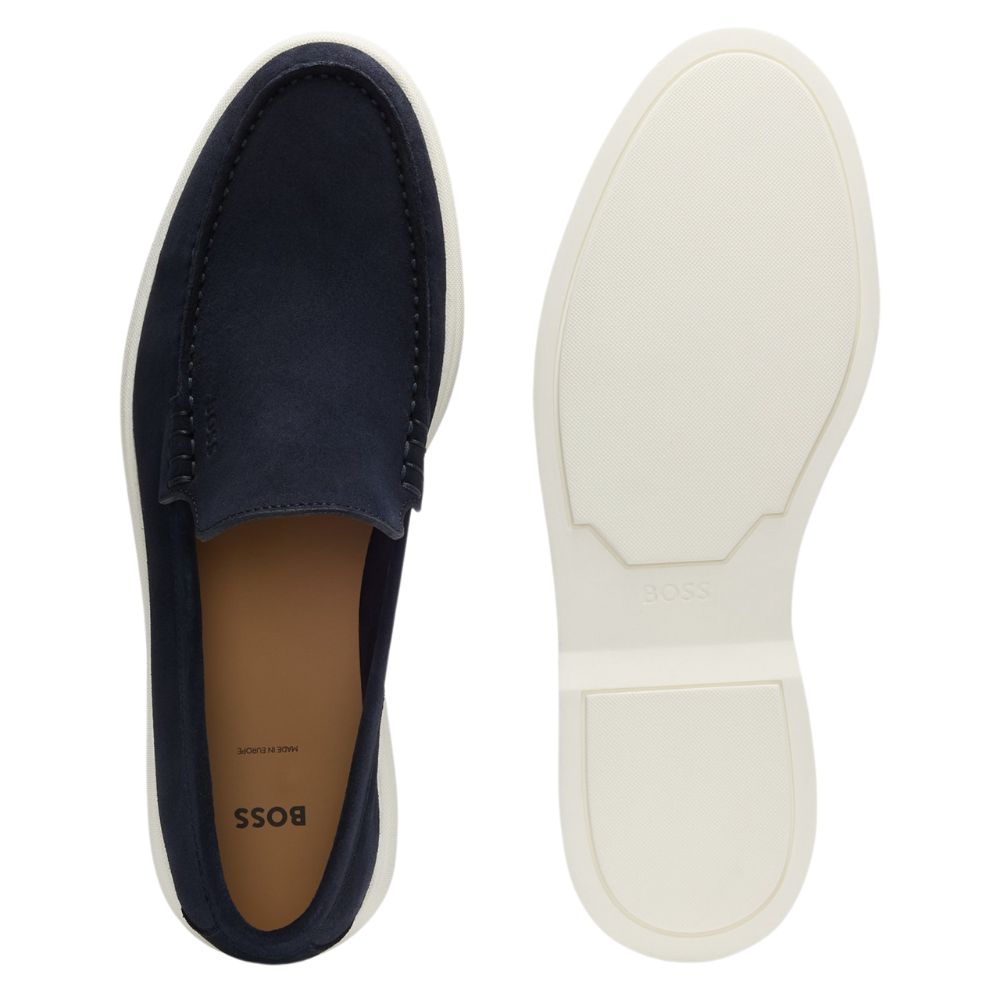 With a comfortable rubberised sole, these BOSS Menswear loafers are a casual essential. Crafted in Portugal with full-suede uppers for easy styling. This product contains at least 60% better raw materials. We continuously look for more responsible ways to produce and finish our products. A minimum of 60% of the leather used to make this product has been sourced from certified tanneries.
