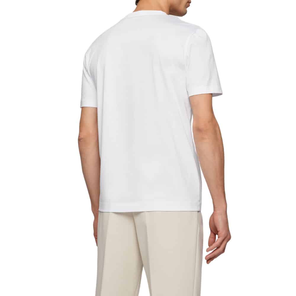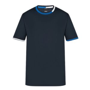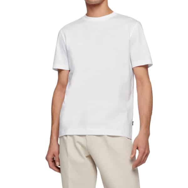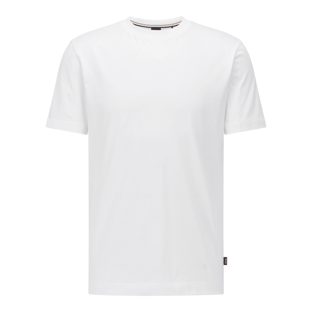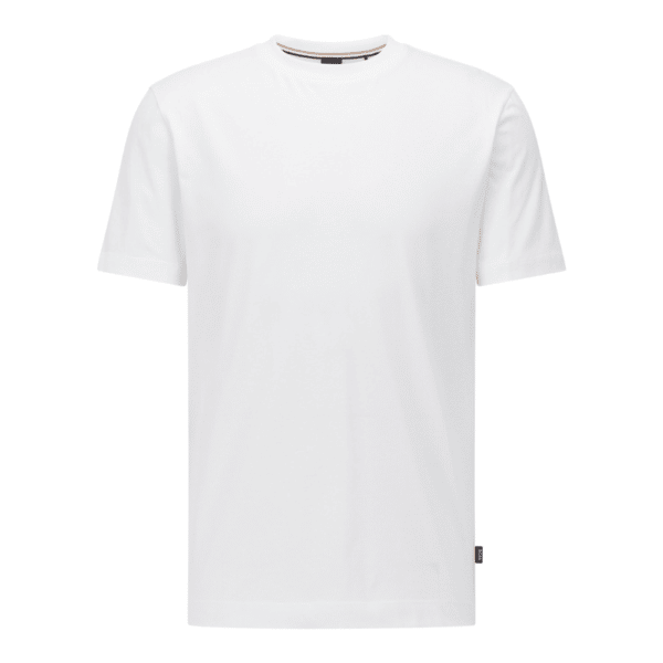 A short-sleeved T-shirt by BOSS Menswear, cut to a regular fit for casual appeal. Crafted in pure-cotton jersey for natural comfort and breathability, this T-shirt is trimmed with a signature stripe inside the crew collar.
