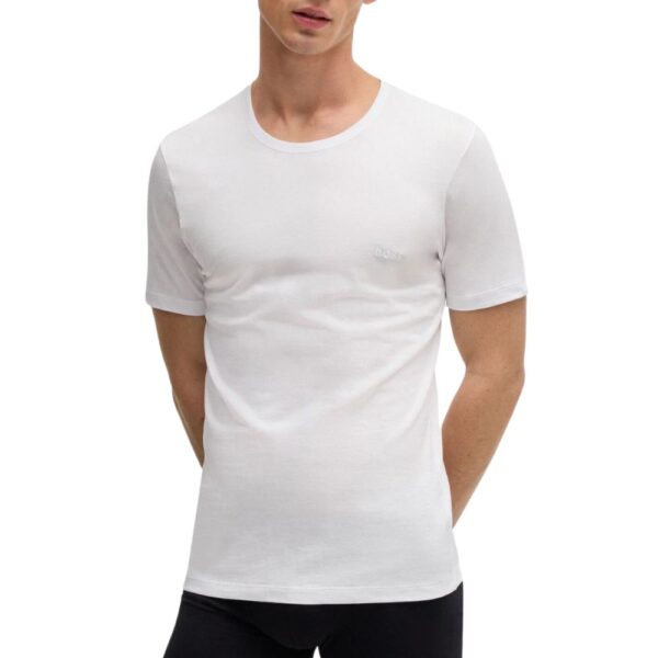 Three short-sleeved underwear T-shirts by BOSS. Made from 100% Cotton with a logo embroidery on the front left of the chest.