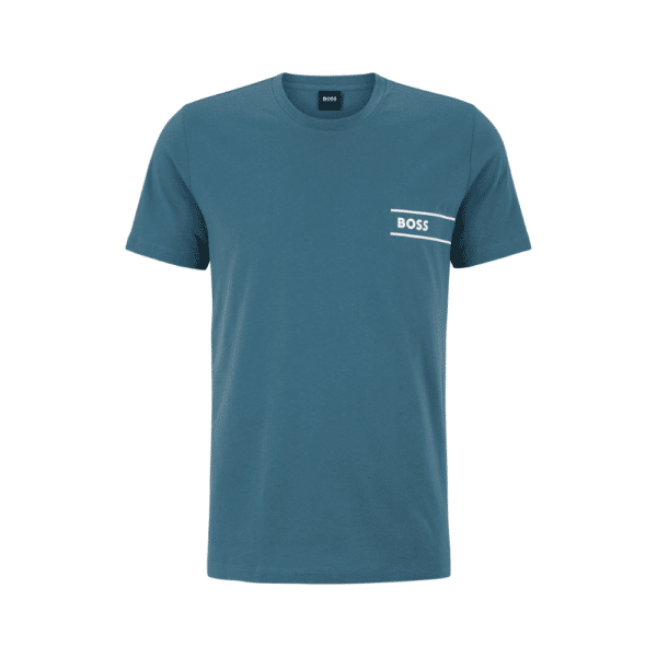 A stylish T-shirt that is boxed featuring a boss printed logo .