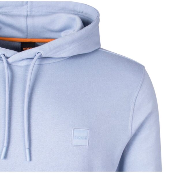 Experience elevated leisure style with this super-soft Wetalk Light Blue Hoodie from BOSS, crafted in plush French terry cotton, this easy-wear essential features a tonal woven logo patch at the chest for a refined touch. The classic hooded neckline and long sleeves provide all-day comfort, while the versatile design makes it ideal for laid-back weekends, casual days, or off-duty downtime. Pair it with joggers or chinos for an effortlessly cool look.