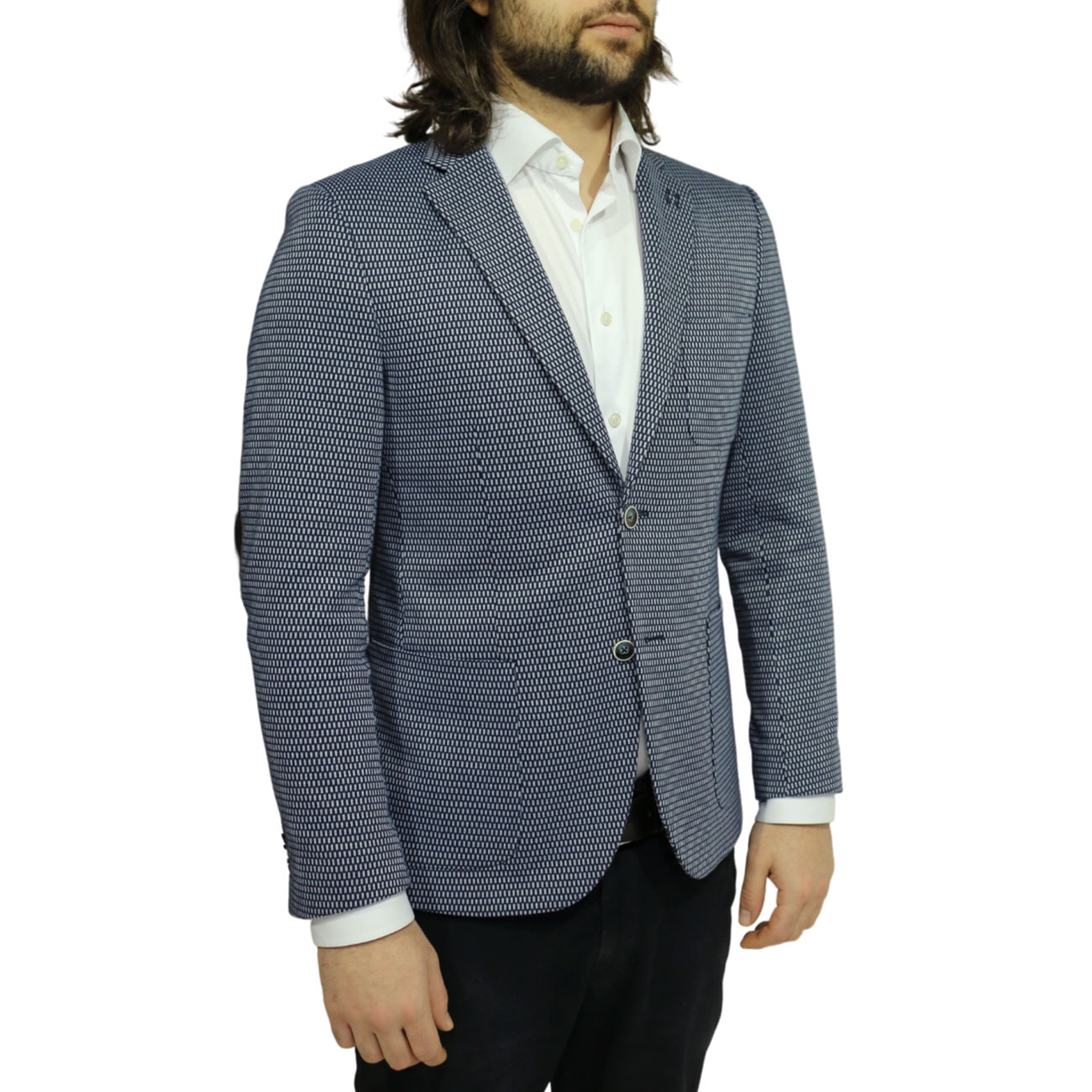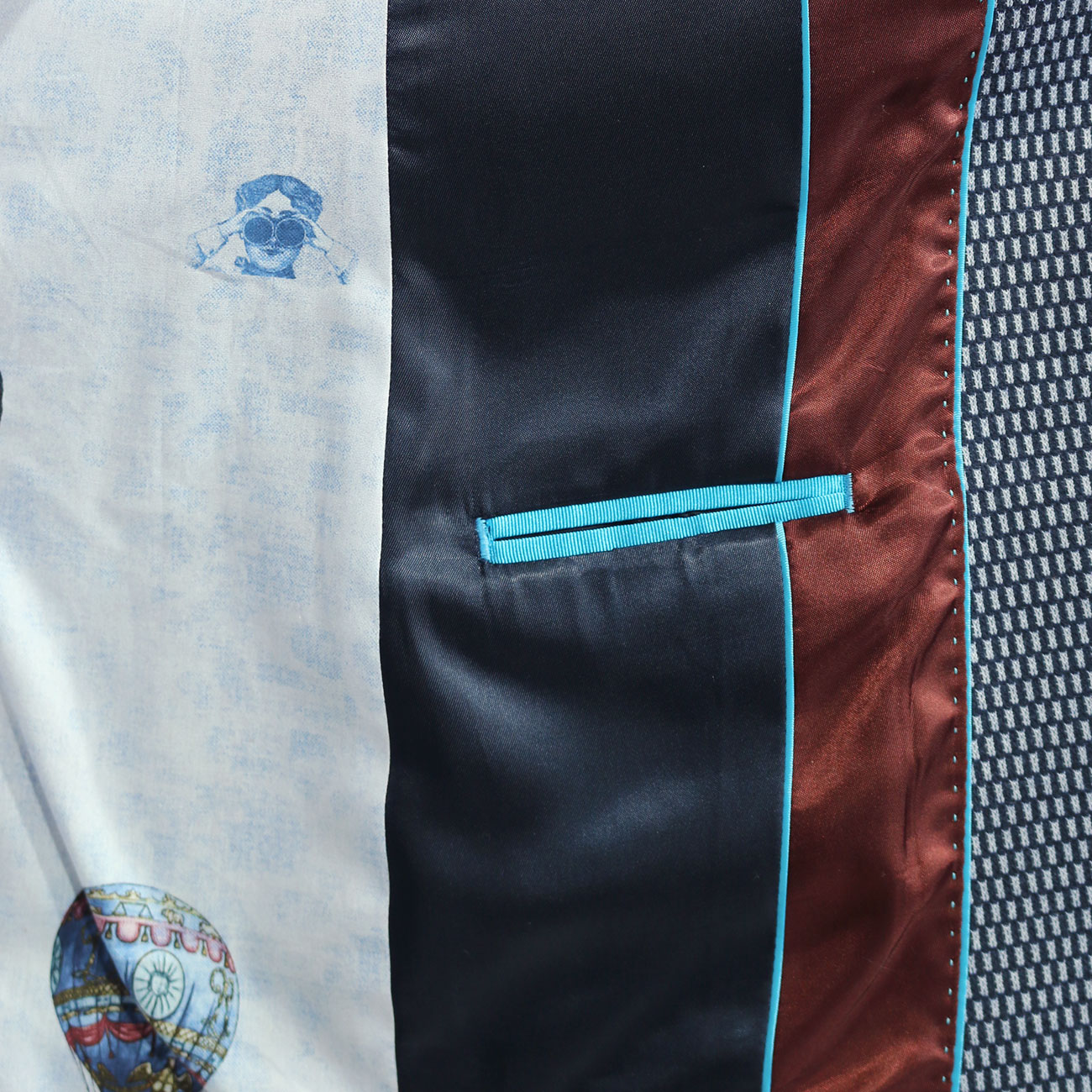 This Navy check British Indigo jacket features Patch Pockets and side vents.it is a tailored fit also has a fancy lining , a classic jacket with a twist.