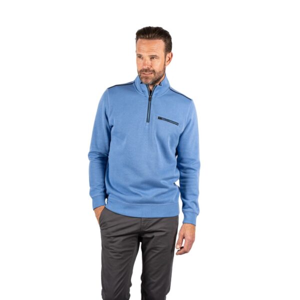 This sporty Bugatti half zip is a true classic and should not be missing from any wardrobe. The cotton mix has a particularly soft feel. A small zip pocket on the chest is a fashionable eye-catcher.