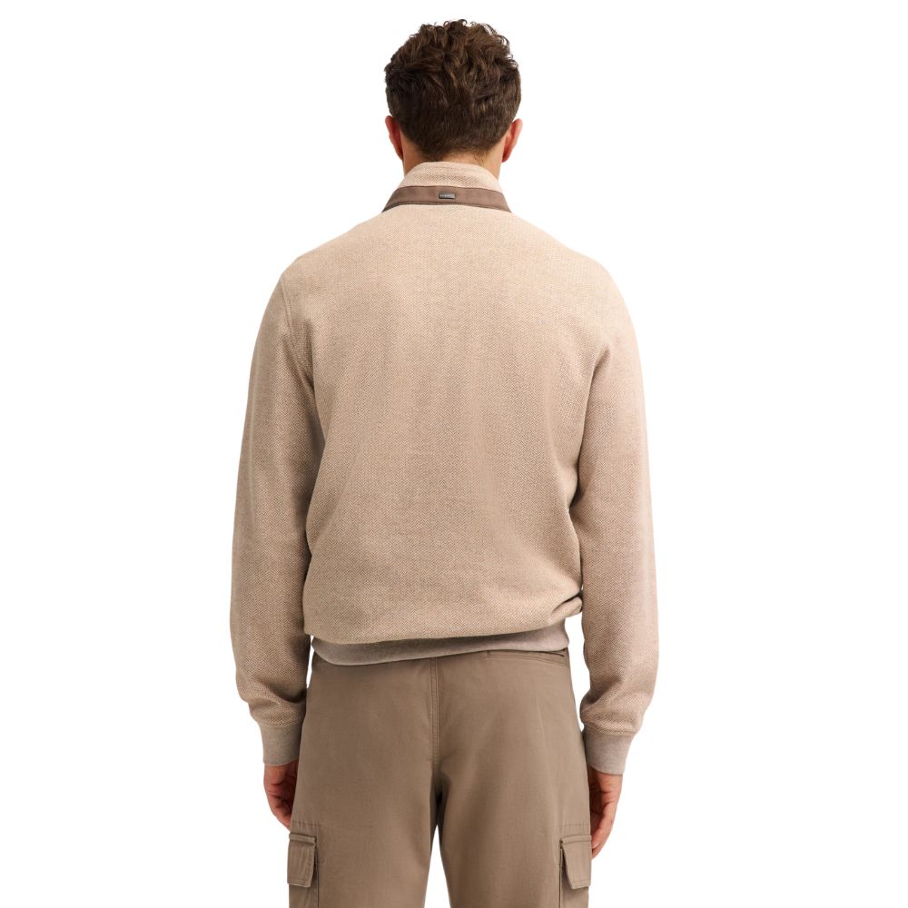 Bugatti Half Zip Beige Herringbone Cotton Sweater