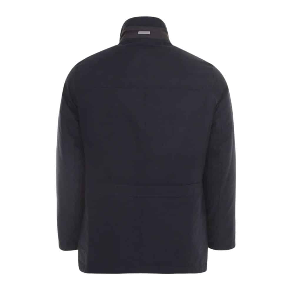 This medium length navy coat from Bugatti is made from a soft, suede-like fabric and has zip fastening with button flap and a smart stand up collar. It also Features pockets inside and a knitted collar lining for extra warmth.