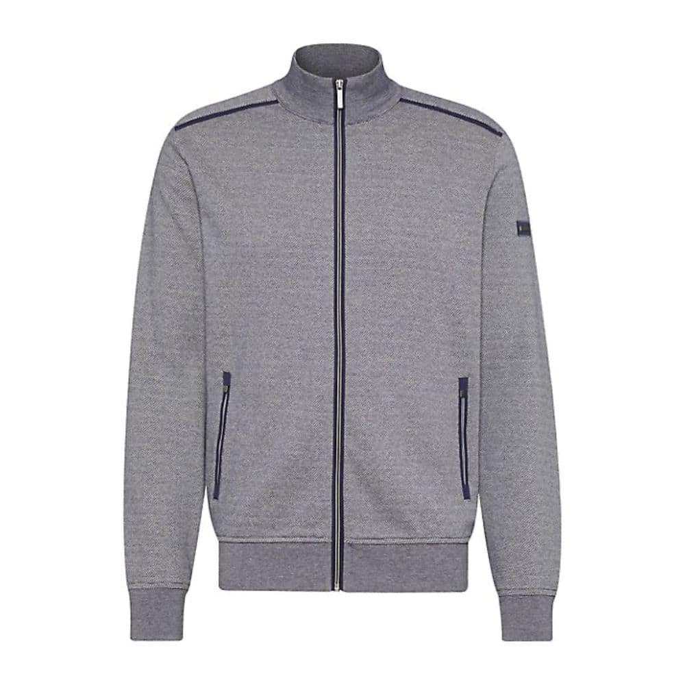This Bugatti full zip sweatshirt is a great addition to your everyday wardrobe. Finished in a mesh pattern with contrasting grey to the zip. Perfectly paired with a navy t-shirt and blue jeans.