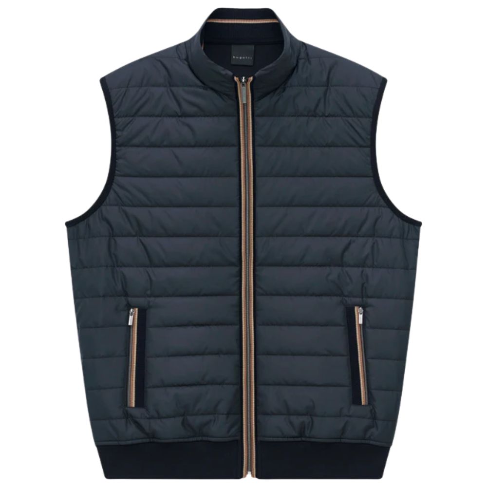 The BUGATTI Navy Casual Full Zip Gilet offers lightweight warmth with a relaxed, sporty feel. Designed for easy layering, it features a full zip front and a clean, versatile silhouette. Finished in a classic navy tone, it’s an ideal addition to casual and off-duty wardrobes.