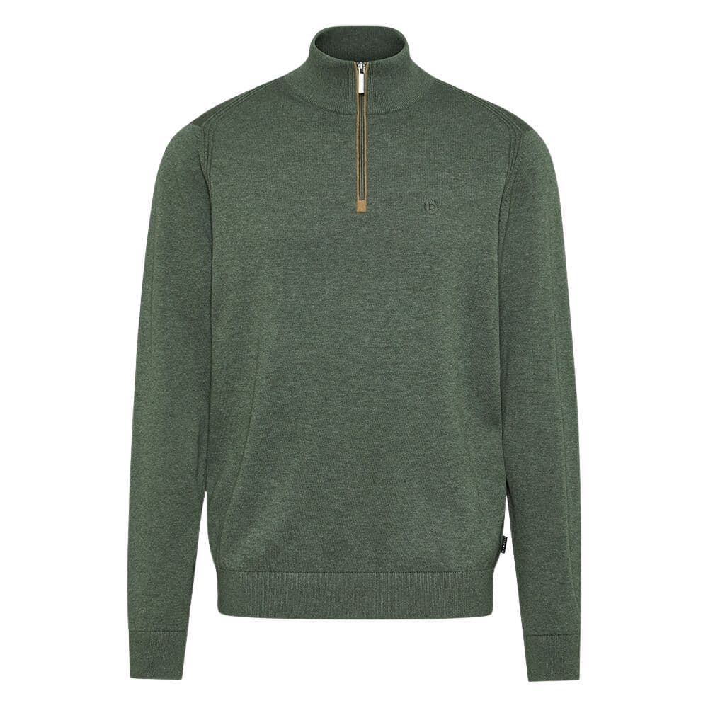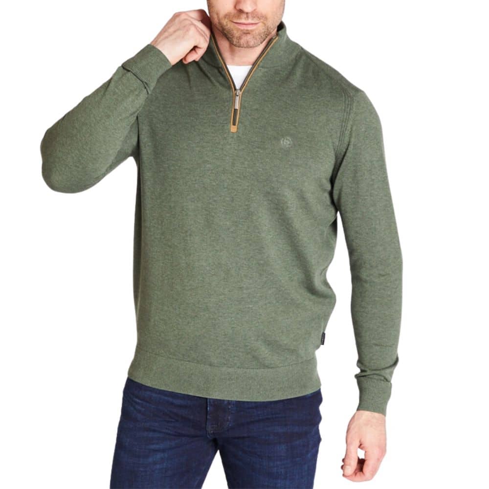 This Bugatti Half Zip Jumper is crafted from pure cotton for a comfortable and breathable wear. The jumper features a stand-up collar, half-zip closure, and ribbed cuffs and hem for a clean finish. The versatile green color makes it easy to pair with a variety of outfits, making it a perfect addition to your casual wardrobe.