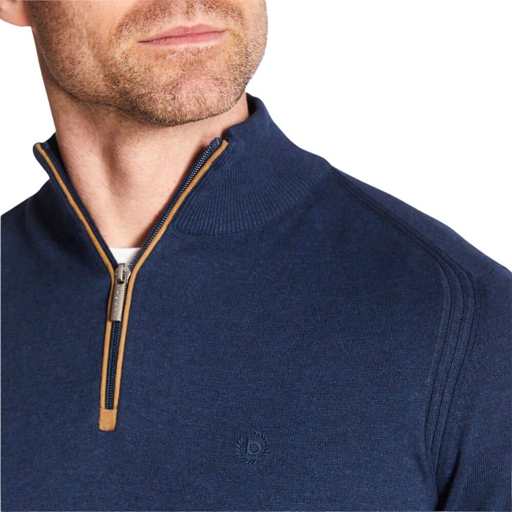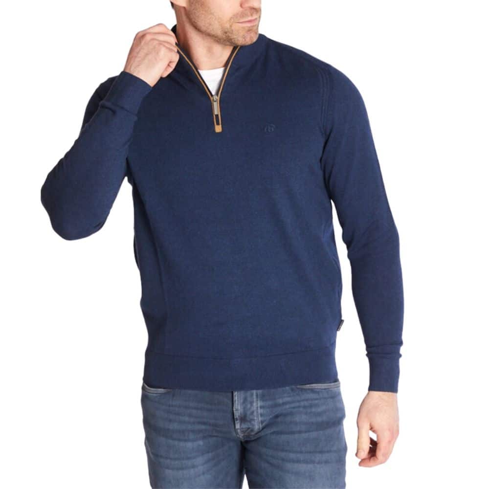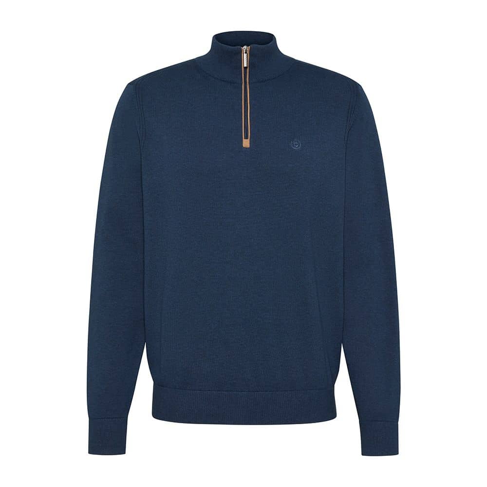 This Bugatti Half Zip Jumper is crafted from pure cotton, offering a comfortable and breathable wear. The jumper features a stand-up collar, half-zip closure, and ribbed cuffs and hem for a clean and polished finish. The versatile navy blue colour makes it easy to integrate into a variety of outfits, becoming a staple in your casual wardrobe.