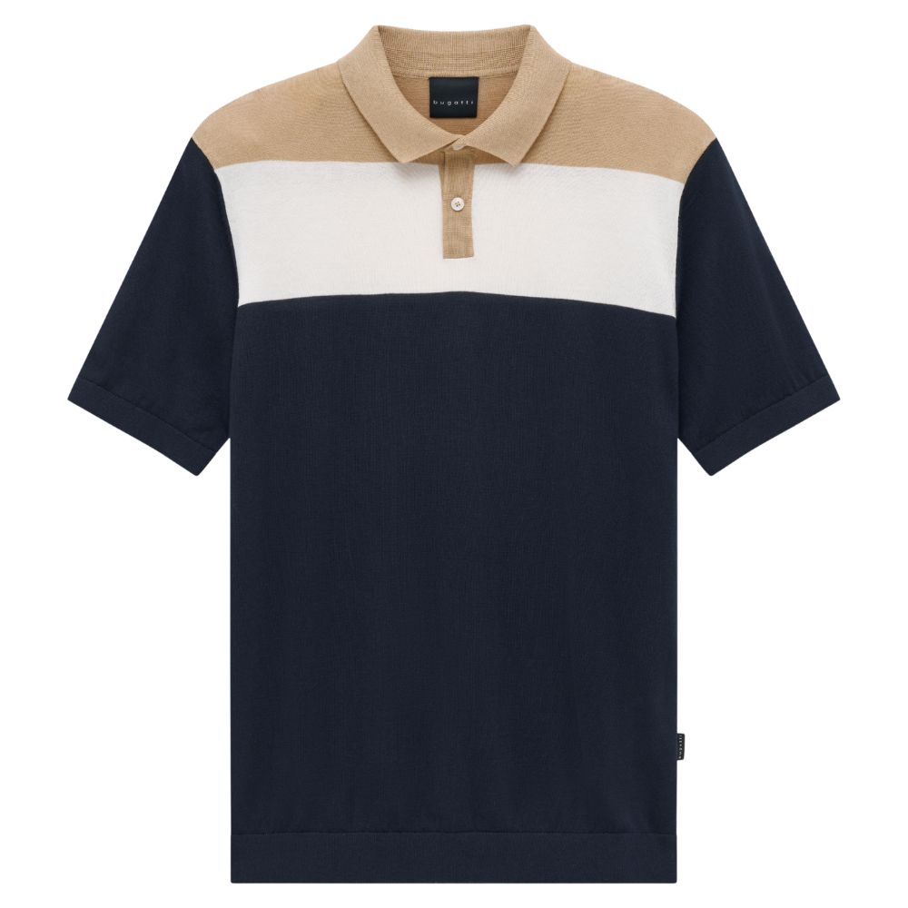 The Bugatti Striped Navy Polo Shirt offers a sporty yet refined take on a casual classic. Crafted from soft, breathable cotton, it features a distinctive front panel with the signature Bugatti white, brown, and navy stripe detailing for a bold, recognisable finish. Designed with a traditional polo collar and a comfortable fit, it’s a versatile choice for relaxed and smart-casual wear.