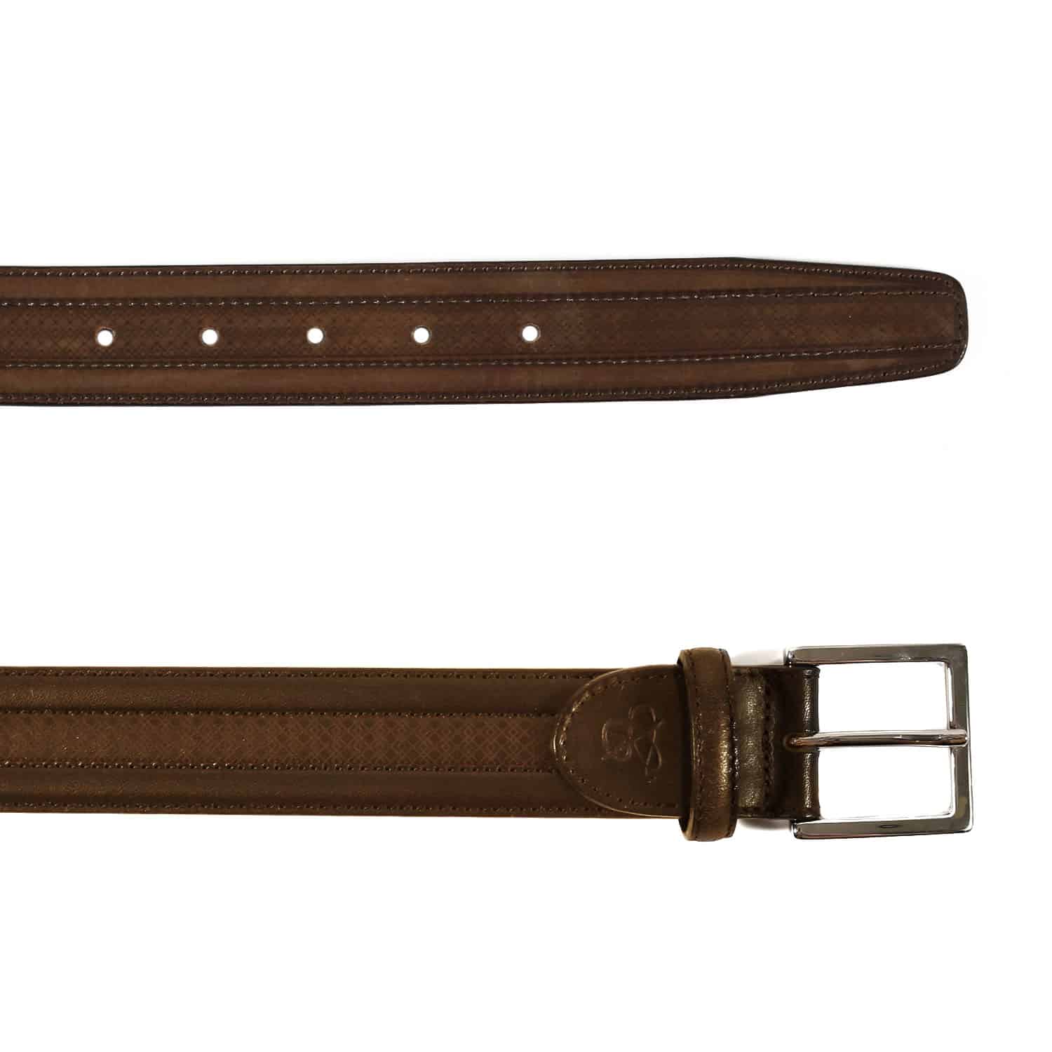 The Canali Monogrammed Belt in Brown is Made in Italy and features a strip of leather embossed with Canali’s monogram. The strap is crafted from calf leather for excellent quality and longevity . The buckle is made from metal hardware and is square shaped for a smart look. The Canali logo is embossed next to the belt loop to add a hallmark of Italian luxury.
