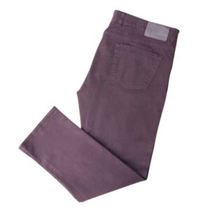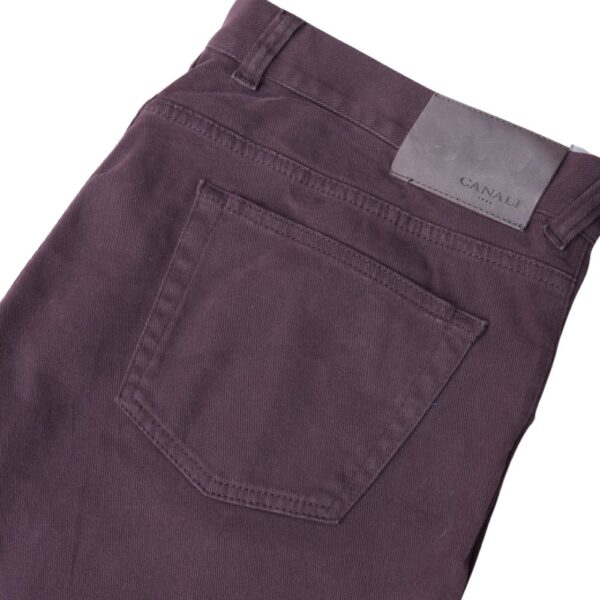 Canali Burgundy jeans add a different take to the denim trouser exploring a different colour while keeping the soft feel, classic regular fit and luxury materials. All Canali jeans are hand crafted in Italy with premium Fabric and expert Craftmanship.