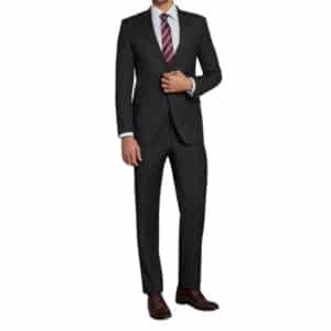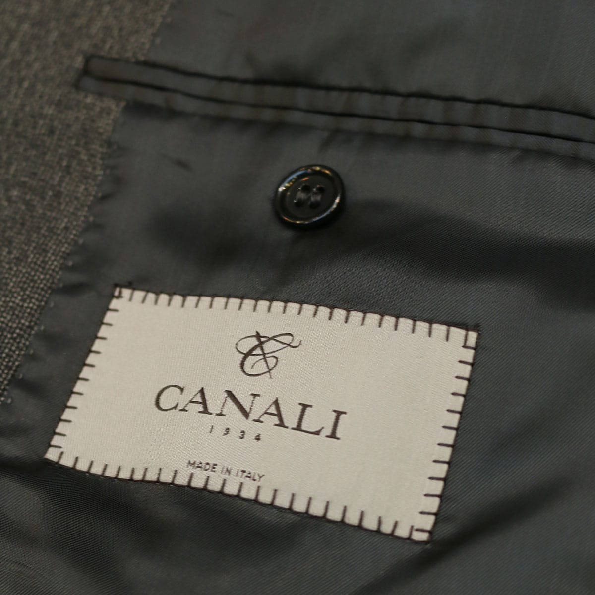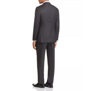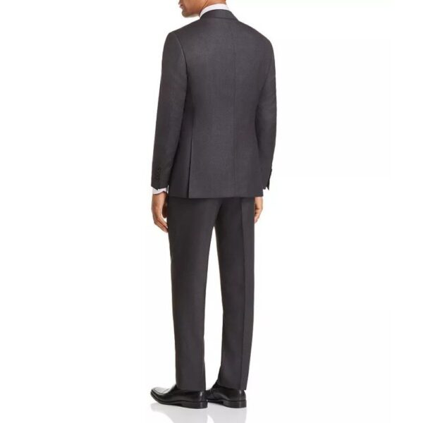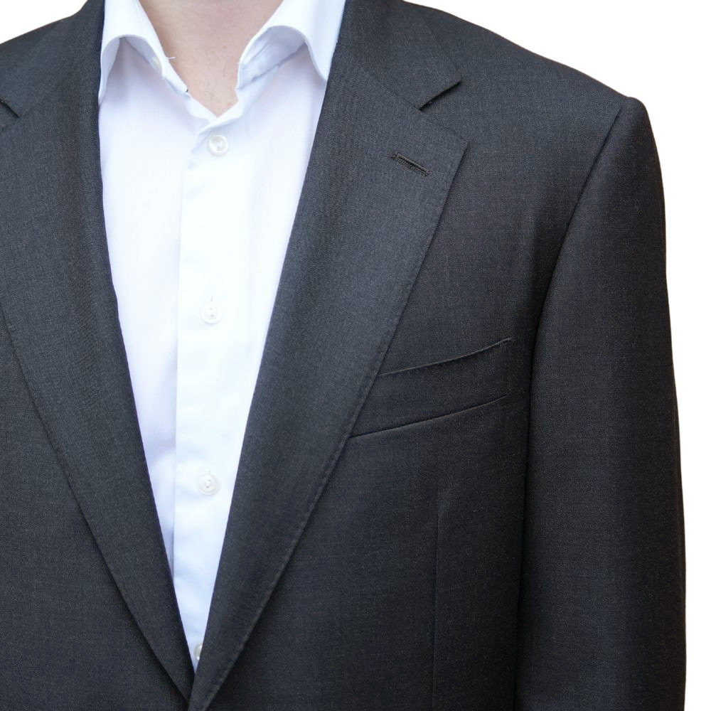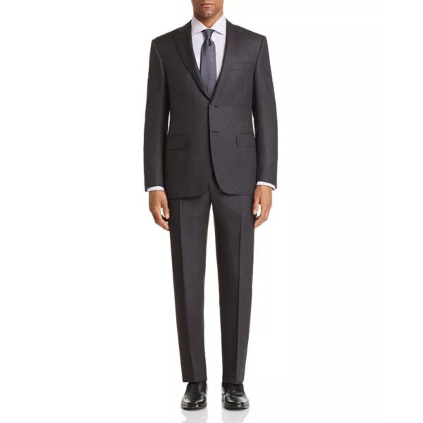 This Canali Cool Charcoal Lightweight Wool Suit is made in Italy from a super light wool fabric with a fine texture and soft, airy feel. This suit consists of two pieces: a two button jacket with notch lapels and fully hand canvassed construction, and flat front trousers with tapered leg. Cut to a contemporary fit, this suit offers generous room with a slightly fitted look.