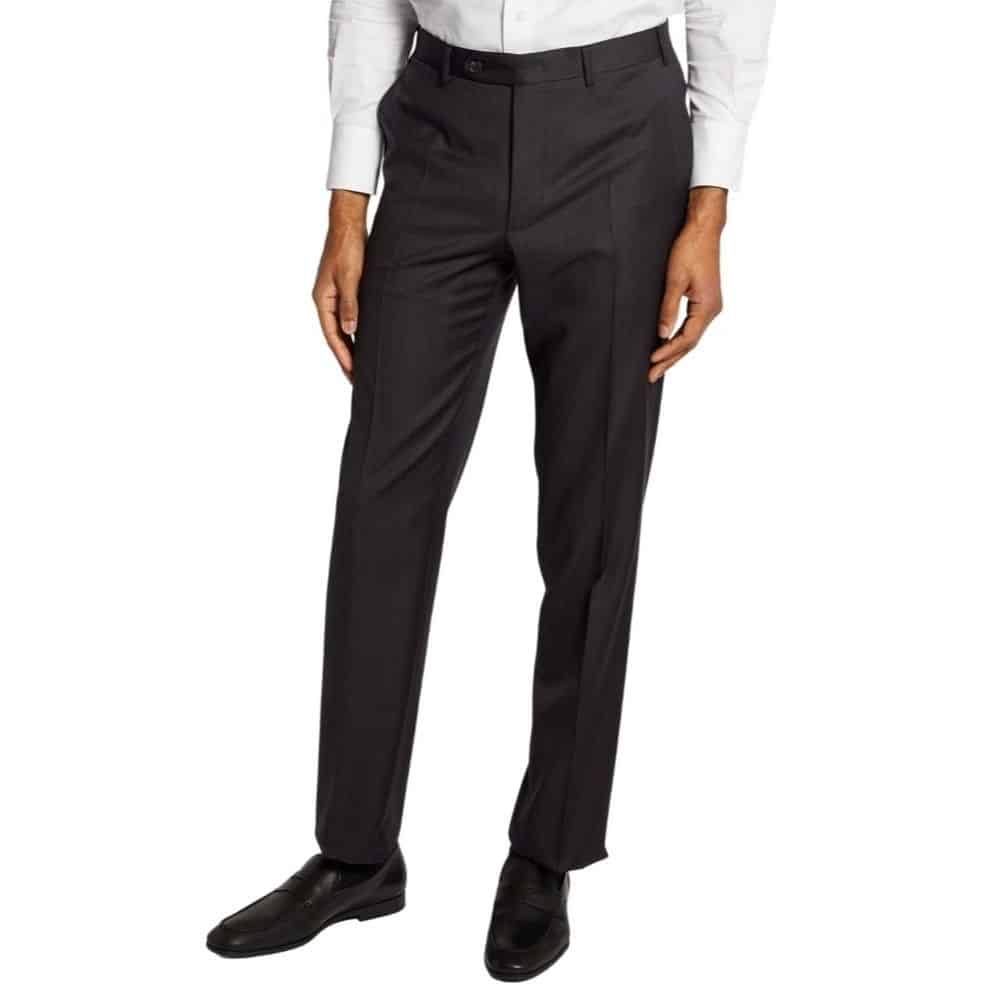 This Canali Classic Fit Charcoal Suit is an Italian made two piece model with classic styling and fit. The jacket is fully hand canvassed for an excellent construction that is both comfortable and long lasting. The trousers have a relaxed waist and leg for easy wearing and flat front for clean look. The pure wool cloth is a superb quality and features a plain weave for subtle texture and a sophisticated look.