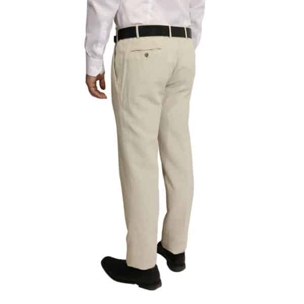 These crisp off-white Cotton Linen Chinos by Canali are a lightweight trouser for wearing in warmer temperatures. Featuring a flat front design with tortoiseshell effect buttons, a double waist fastener, large french pockets and button up welt pockets at the back for practicality and classic style. Cut to a slim fit for a tailored shape and excellent comfort.