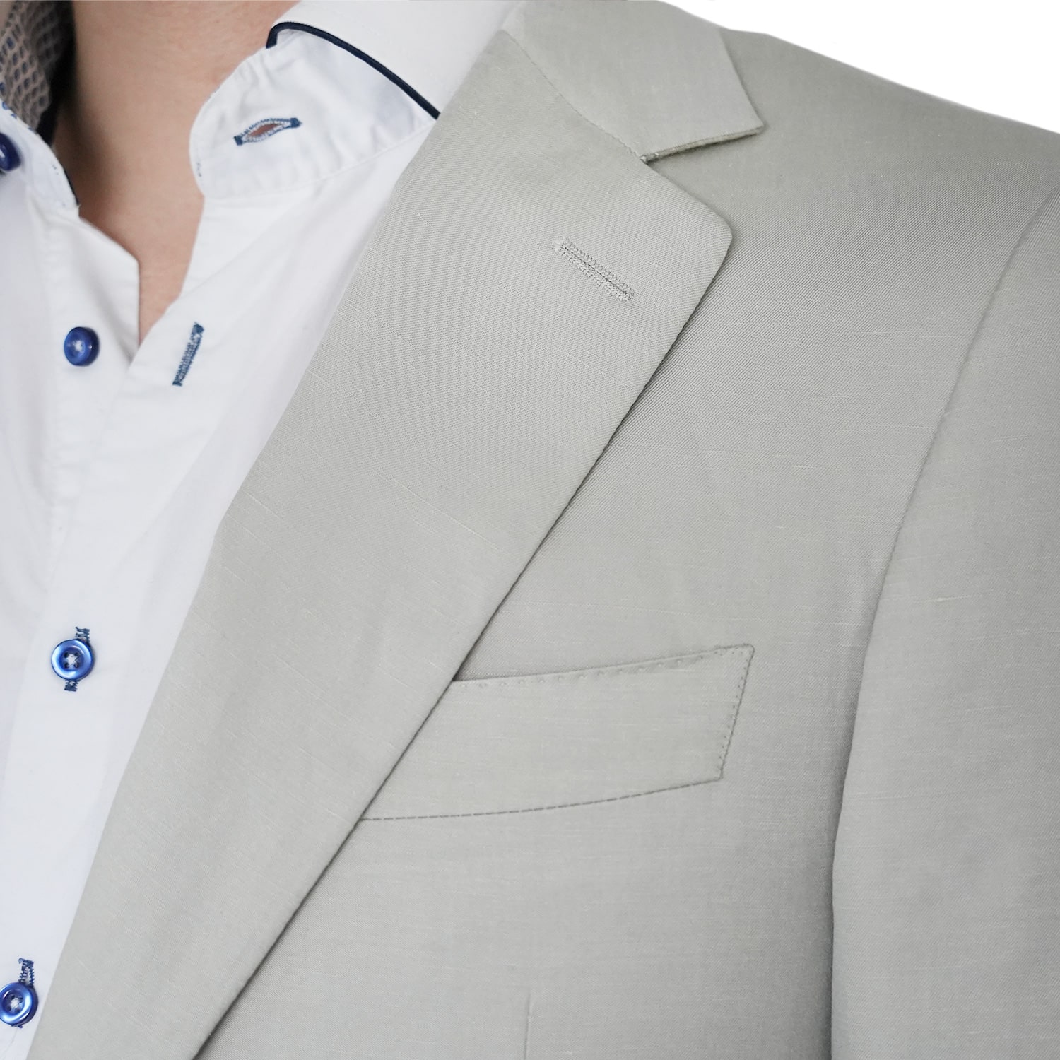 This light weight exclusive stone silk and linen suit from Canali is made from a soft, breathable cloth so ideal for those hotter summer months. Made in Italy from luxurious silk and linen blend, this suit has a refined hand and retains a cool temperature.