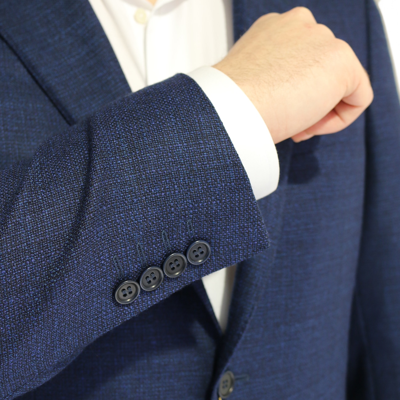This Canali Fine Textured Wool Smart Jacket in Blue is made in Italy from luxury wool fabric with a distintive textured knit. Features include a 2 button front with notch lapels and front flap pockets for classic style. The twin vents allow for ease of wearing and the hand worked construction is unstructured for lightness. Cut to a contemporary fit, it is comfortable and relaxed whilst sitting neatly on the body.