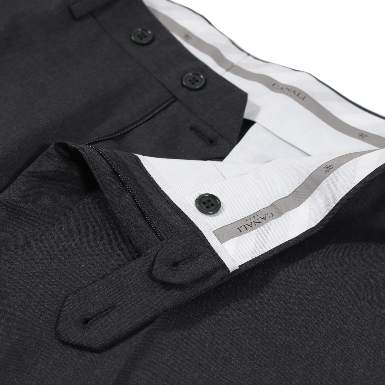 The Canali Contemporary Charcoal Wool Formal Trousers are made to the highest standards in Italy from a superb quality virgin wool fabric. Cut for a contemporary fit, these trousers has a tapered shape for modern style and great comfort. The flat front design has a neat look.
