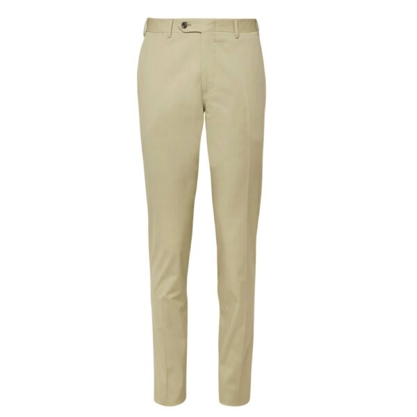 These flat front formal trousers in stone colour by Italian tailoring house Canali are a sophisticated and contemporary style. Featuring a flat front style and a sleek yet relaxed fit, these trousers have a clean modern look and offer excellent comfort for wearing. For assured craftsmanship and quality, this pair of trousers have been made in Italy from a virgin wool textile with a refined, soft hand.