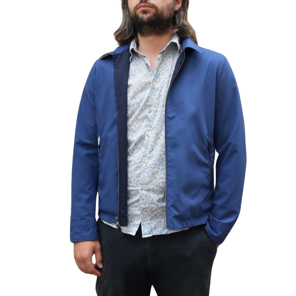 The sporty reversible waterproof blouson jacket with collar comes with popper pockets on the Navy side and zip pockets on the blue side and full zip front. Button working sleeves complete this waterproof, windproof and breathable jacket.