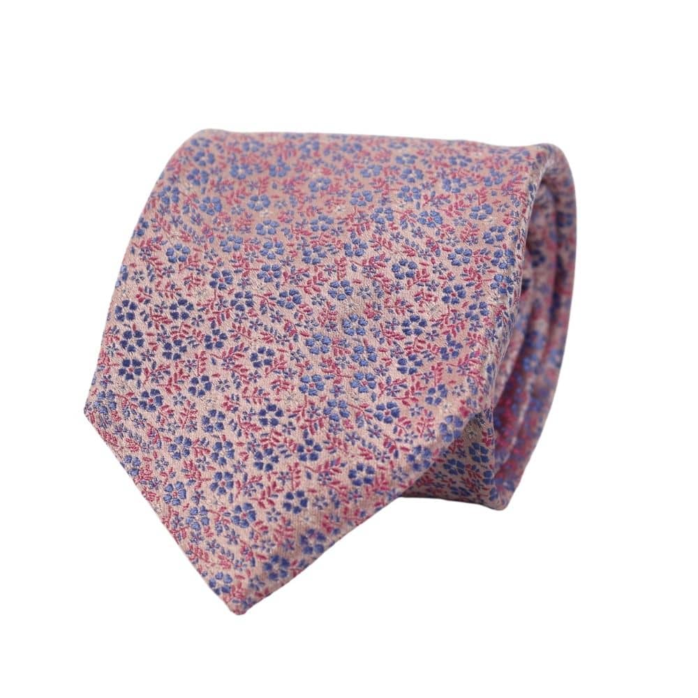 The Canali Mini Flower Tie in Pink has a cool floral design, with all over blue and pink embroidered flower details. Made in Italy from silk and comes presented in a branded tie sleeve.