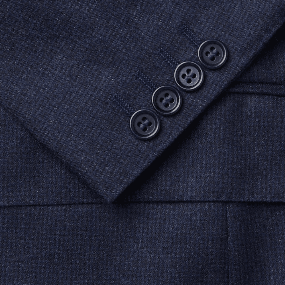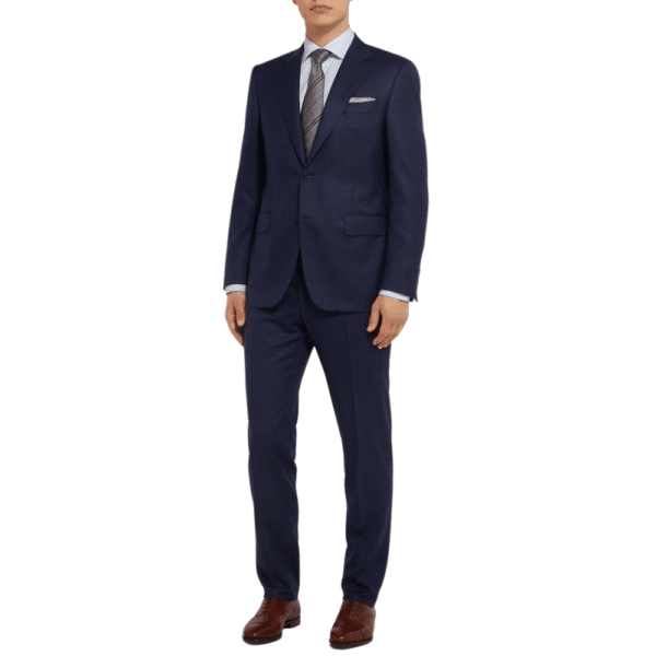 This Canali Navy self micro check Suit is made in Italy and features a fully hand canvassed construction for first class craftsmanship and quality. The style of the suit is a classic two button model with notch lapels and flap pockets. The cloth is a premium flat weave virgin wool, which has a subtle woven texture and refined, soft hand. The trousers have a relaxed fit which adds comfort whilst retaining a modern tailored shape, making this the perfect choice of attire for any formal and business occasion.