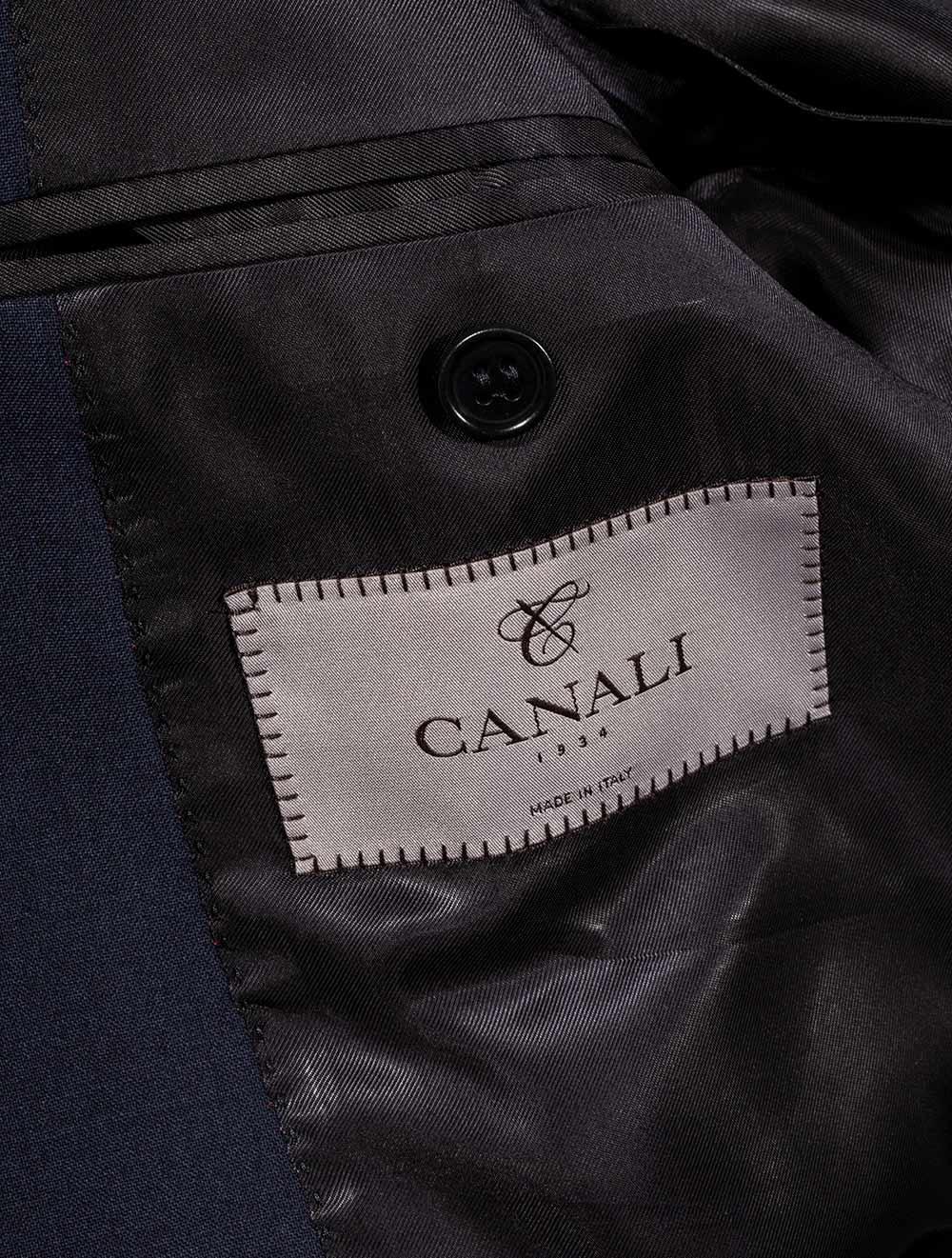 This Canali Navy Self Stripe Suit is made in Italy and fully hand canvassed for first class quality and craftsmanship. The jacket features two buttons and notch lapels whilst the trousers have a flat front for a clean, contemporary look. Both the jacket and trousers have a classic cut for easy wearing fit, which offers comfort and a modern shape. Canali suits are cut from a fine cloth, and this one is no exception! The cloth is an exceptional quality pure virgin wool and features a woven self stripe for subtle yet handsome detail.