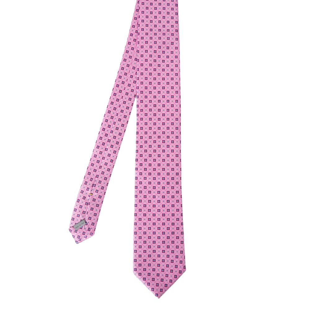Elevate your formal wardrobe with this exquisite tie from Canali, showcasing a sophisticated pink and blue diamond pattern. Crafted from luxurious silk, the tie features a meticulous design where delicate pink tones contrast elegantly with blue detail.