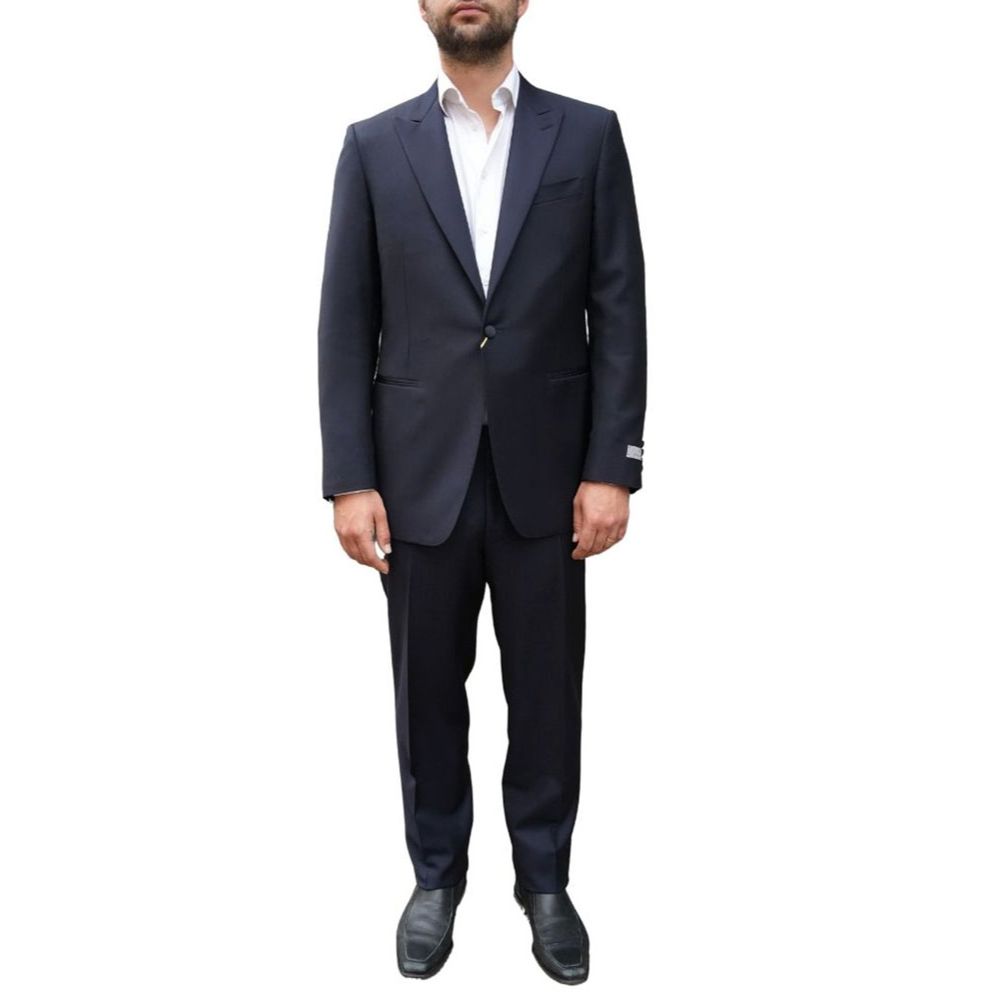 Elevate your formal wardrobe with the timeless elegance of the Canali Pure Wool Navy Dress Suit. Expertly crafted in Italy from 100% premium wool, this classic navy suit embodies sophistication and refinement, making it a versatile choice for any formal occasion.