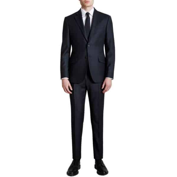 This Canali Navy Shadow Pinstripe Suit is made in Italy and fully hand canvassed for first class quality and craftsmanship. The jacket features two buttons and notch lapels whilst the the trousers have a flat front for a clean, contemporary look. Both the jacket and trousers have a classic cut for easy wearing fit, which offers comfort and a modern shape. Canali suits are cut from a fine cloth, and this one is no exception! The cloth is an exceptional quality pure virgin wool and features a fine tonal pinstripe for a subtle yet handsome detail.