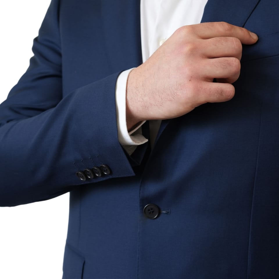Pure wool suit made up of a single-breasted jacket and low-waisted trousers with a contemporary design. Featuring refined details including notch lapels, the sleek lines and slim fit of this suit defines the silhouette, adding character and understated elegance to formal looks for modern men.
