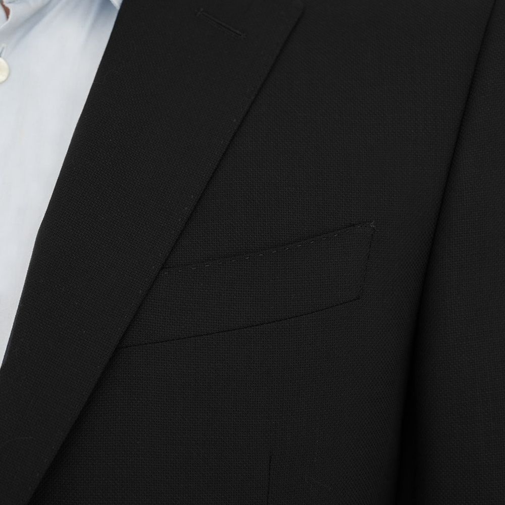 The perfect blend of comfort and practicality, this water repellant black blazer is made from pure, water repellent travel wool, a durable fabric ideal for men who are always on the move. It is a versatile but unique black jacket with high shine Canali branded buttons on the wrist and front.