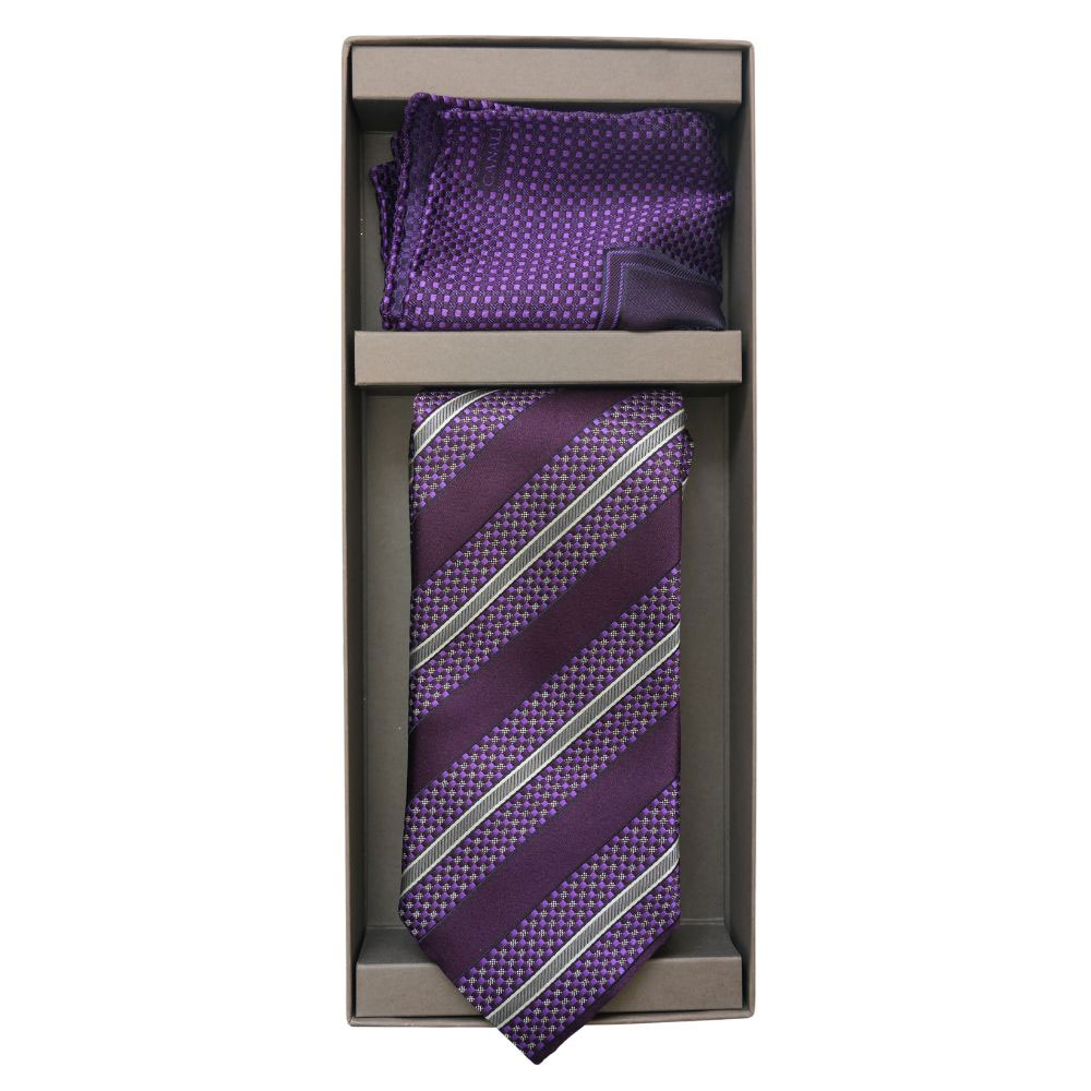 The Canali purple tie and kerchief set epitomizes Italian luxury and impeccable style. Crafted from premium silk, the tie features a deep, regal purple hue that exudes confidence and sophistication. Its rich color is complemented by a subtle sheen, highlighting the tie’s refined texture and quality.