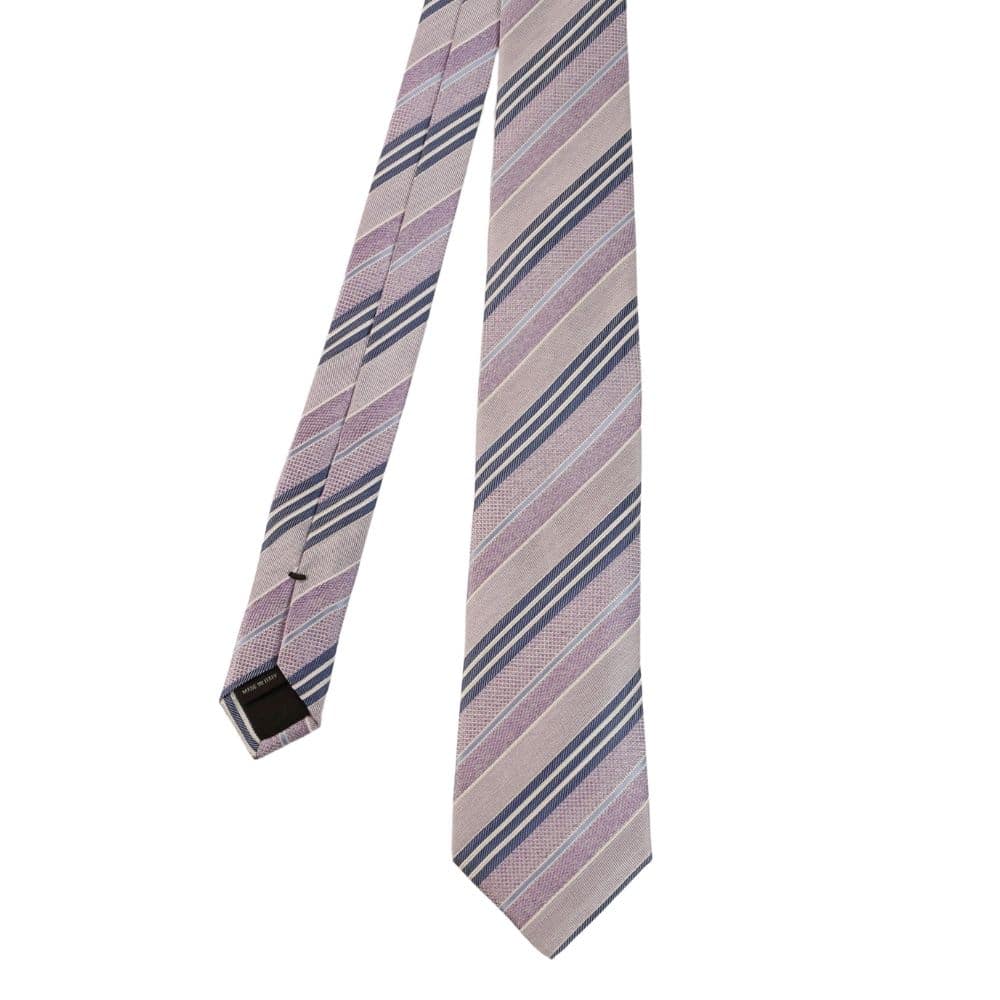 The Canali Regimental Stripe Tie in Lilac features stripes in blues and shades of lilac. Made in Italy from fine silk to ensure the highest quality and presented in a branded sleeve.
