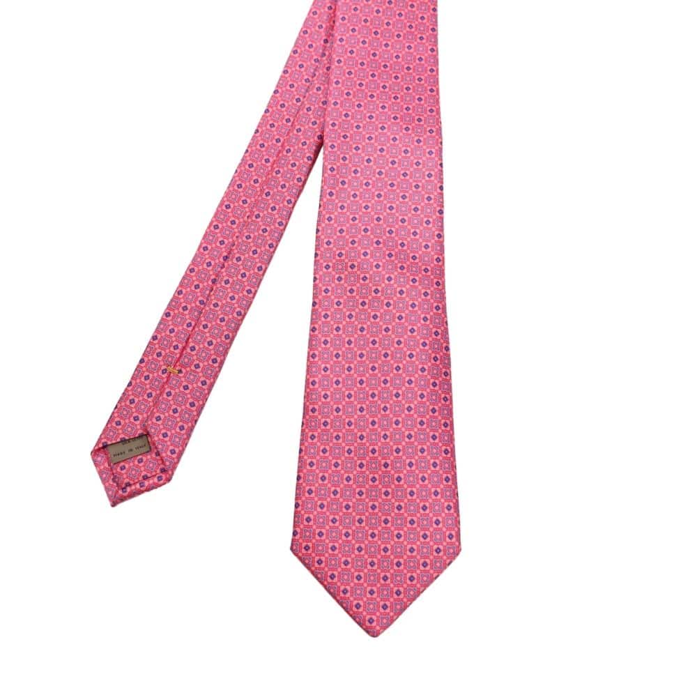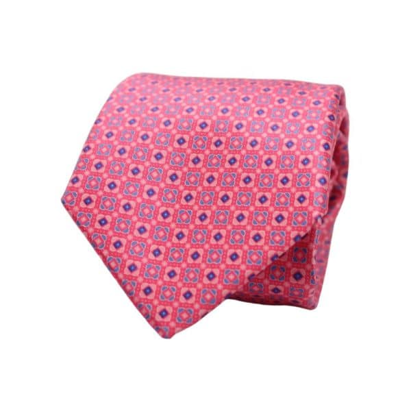 This Canali Squares and Diamonds Tie in Pink features a pattern of square and diamond shapes. Made in Italy from silk and comes presented in a branded tie sleeve.