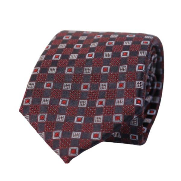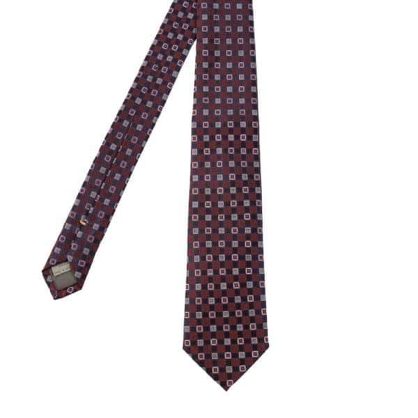 The Canali Squares and Grid Tie in Navy features a navy grid with alternating light blue squares with diamonds and crimson colour at the centre. Made in Italy from silk and comes presented in a branded tie sleeve.