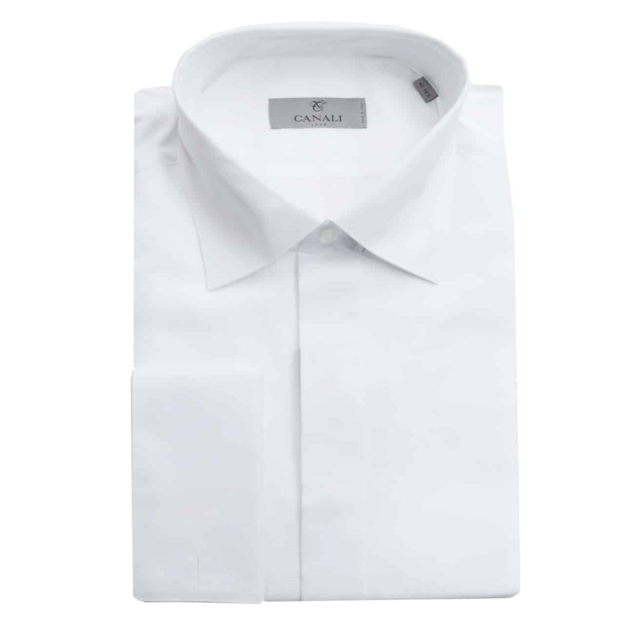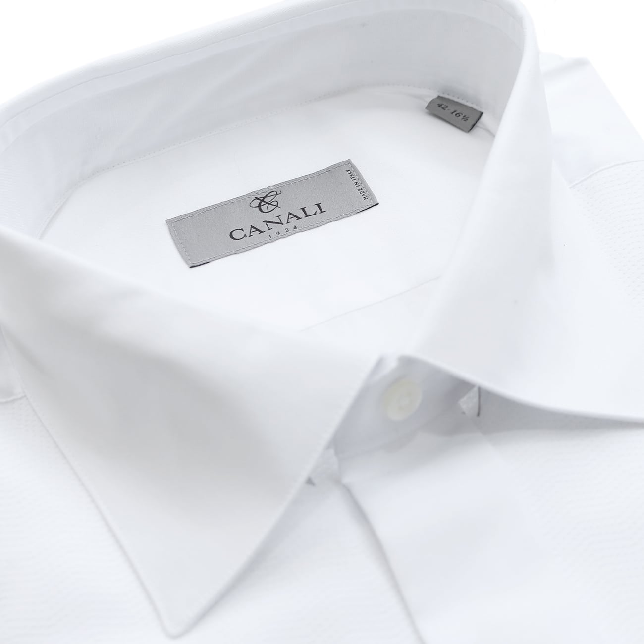 The Canali white dress shirt is a stunning choice for your formal engagements. Realised in a luxurious pure cotton material, this sophisticated dress shirt has a perforated zig zag pattern. The Concealed front serves as a distinguished detail.