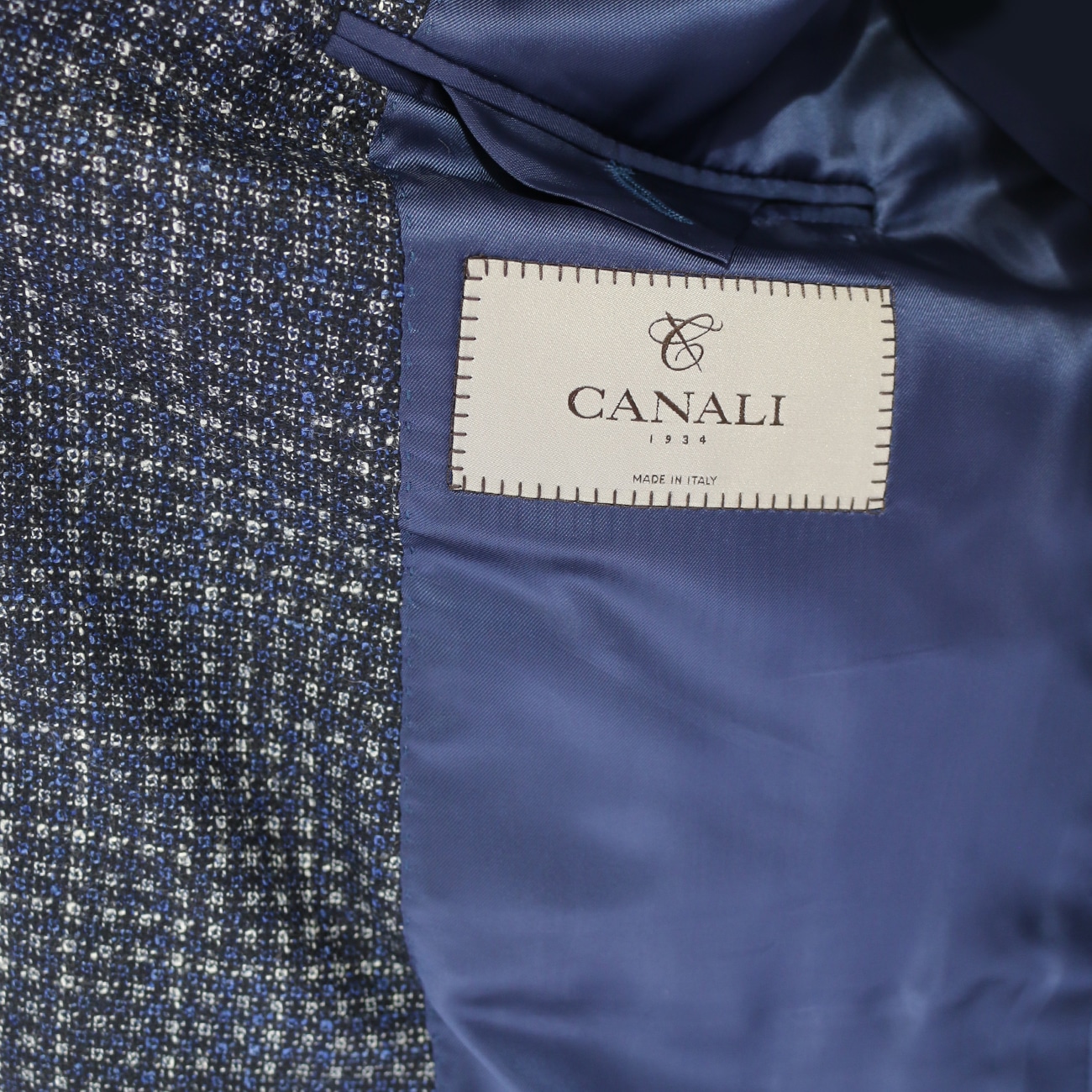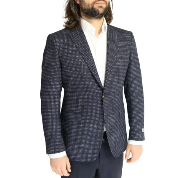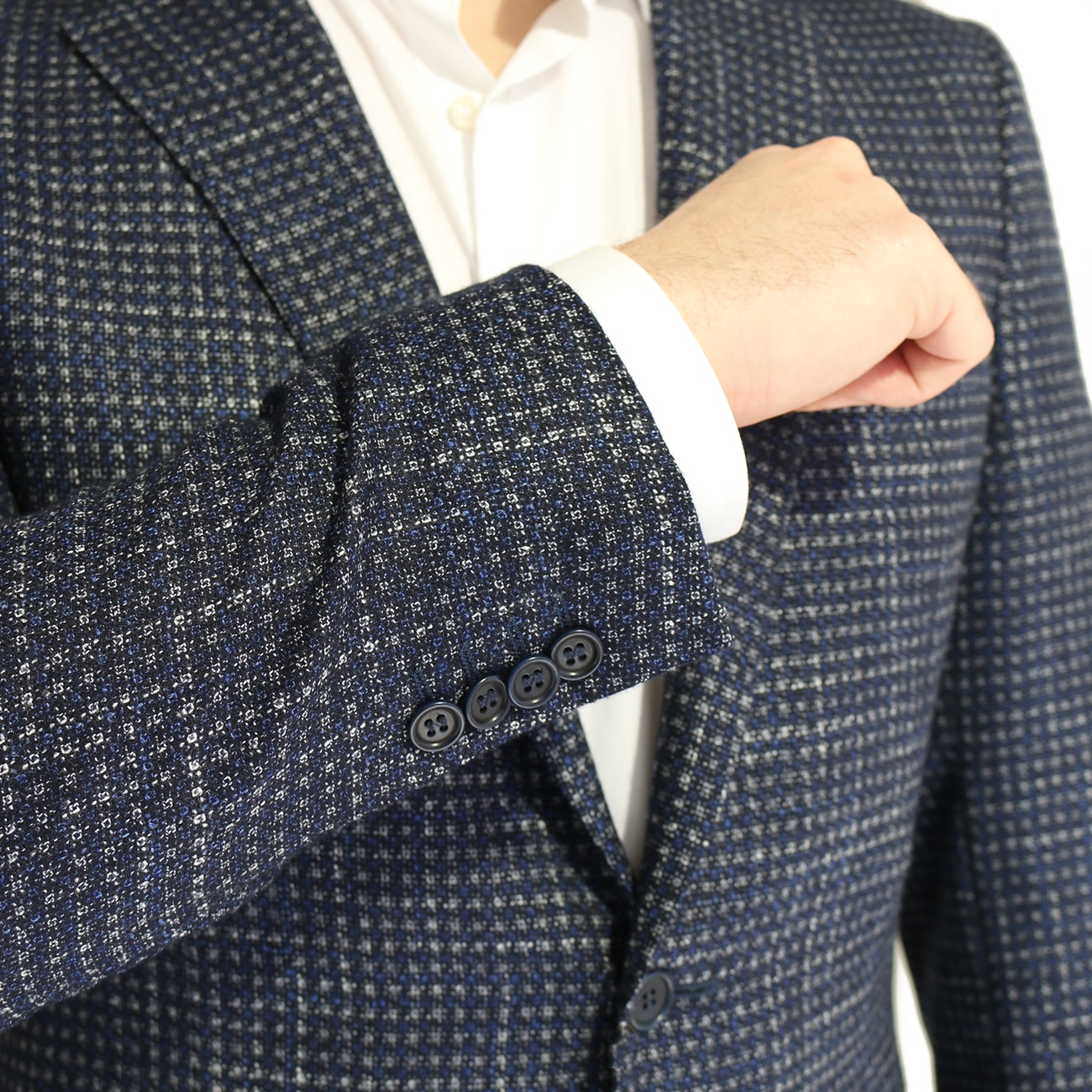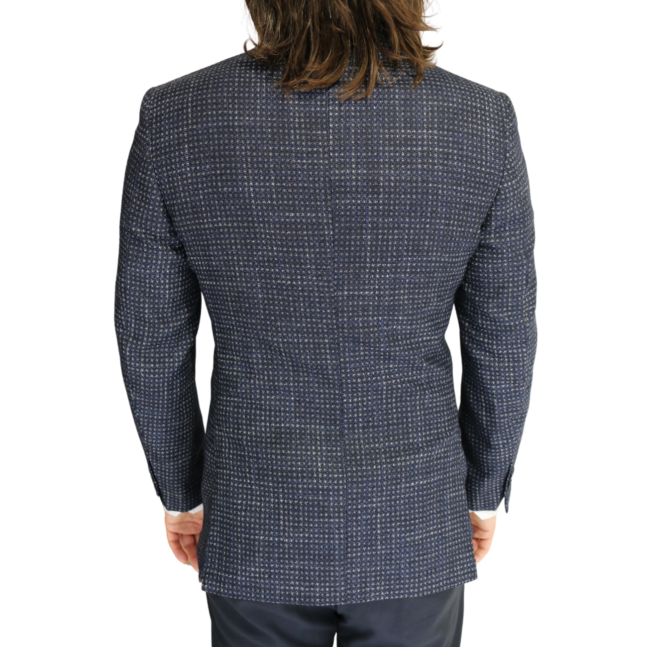 The Canali Dot Check Smart Jacket in Navy and Stone is tailored in Italy to an impeccable standard. This stylish two button jacket has been hand canvased for superb quality and retains its shape. Cut to a contemporary fit for a modern shape that is comfortable and generous in room. The wool silk and cashmere fabric used for this jacket has a luxurious handle and a distinctive check pattern composed of navy, blue and stone coloured dots. Features include proportional lapels, traditional flap pockets and twin vents for a stylish contemporary classic style.