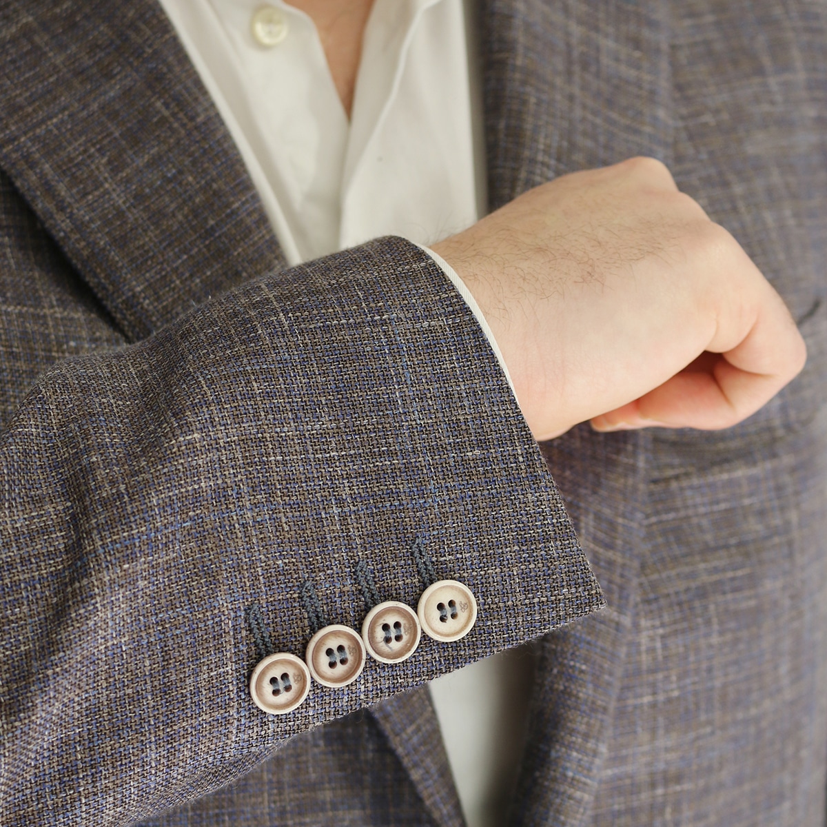 This Canali Wool Silk and Linen Smart Jacket in Grey & Taupe is tailored in Italy to an impeccable standard. Made in Italy using a hand canvased contruction, Canali ensures top level craftsmanship. Features of this smart jacket include proportional lapels, traditional flap pockets and twin vents. The cloth used is woven from multiple coloured fibers to for comfort and breathablility and distinctive texture.