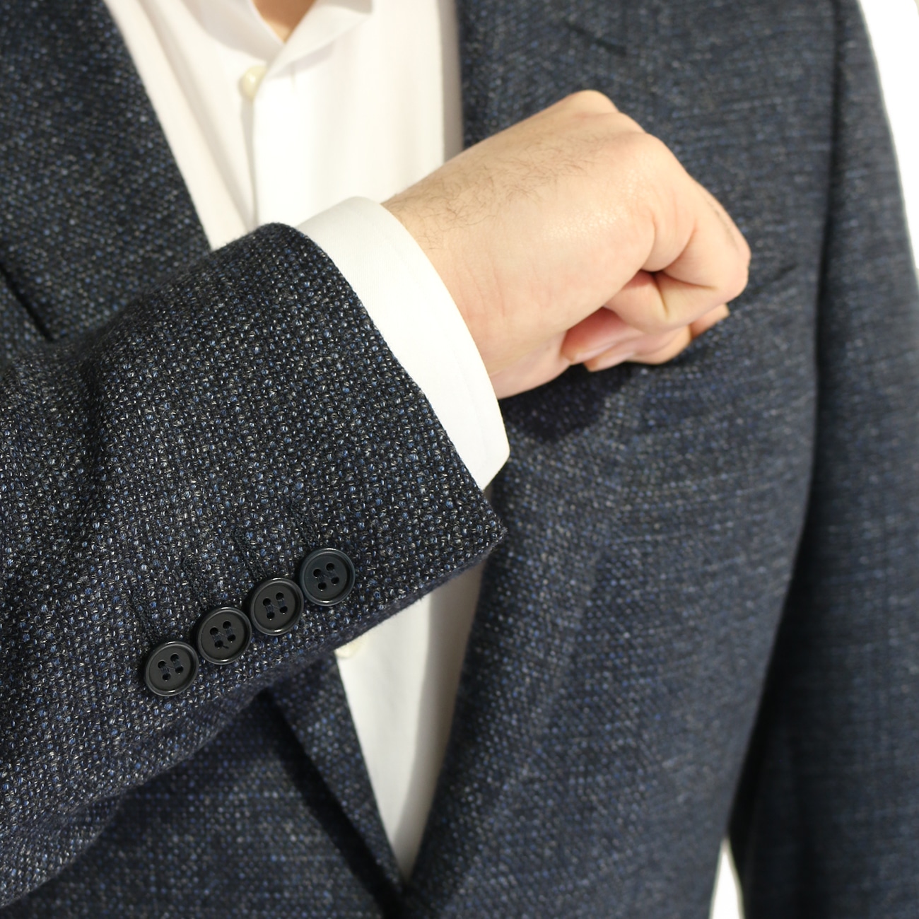 This Canali Speckled Wool Smart Jacket in Dark Blue is tailored in Italy to an impeccable standard. This two button jacket has been hand canvased for superb quality and retains its shape. Cut to a contemporary fit for a modern shape that is comfortable and generous in room. Features include proportional lapels, traditional flap pockets and twin vents and also a luxurious fabrication for a stylish contemporary classic style.