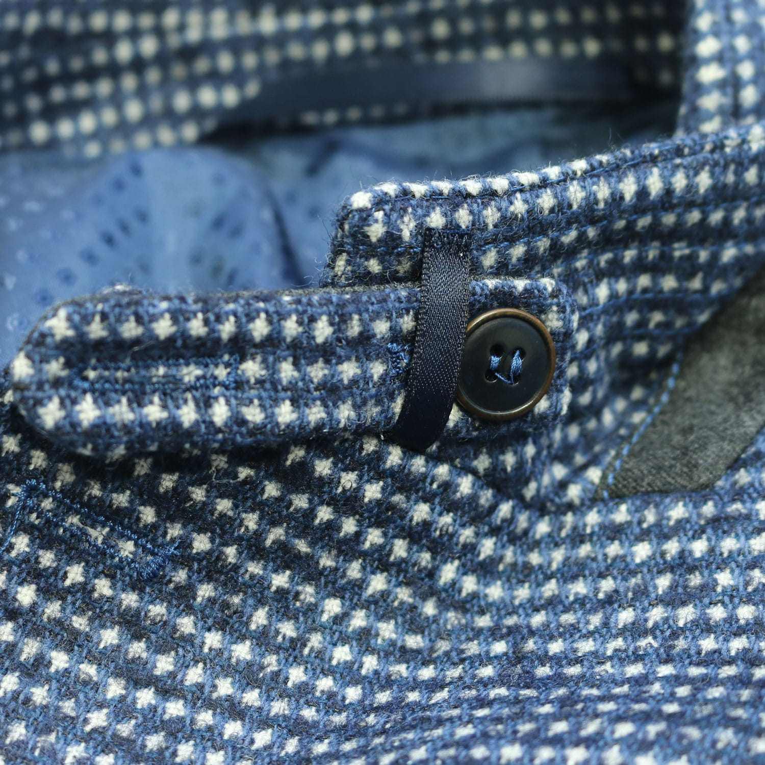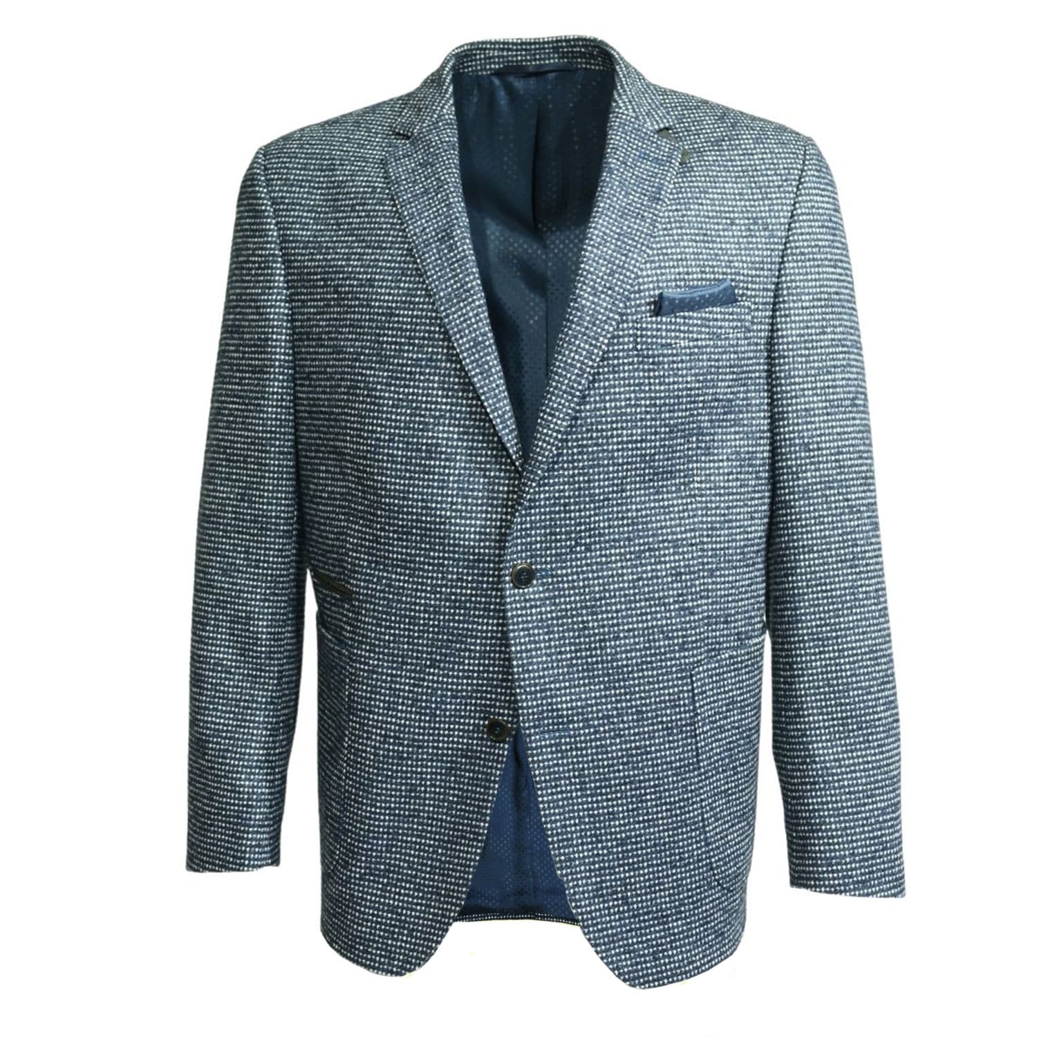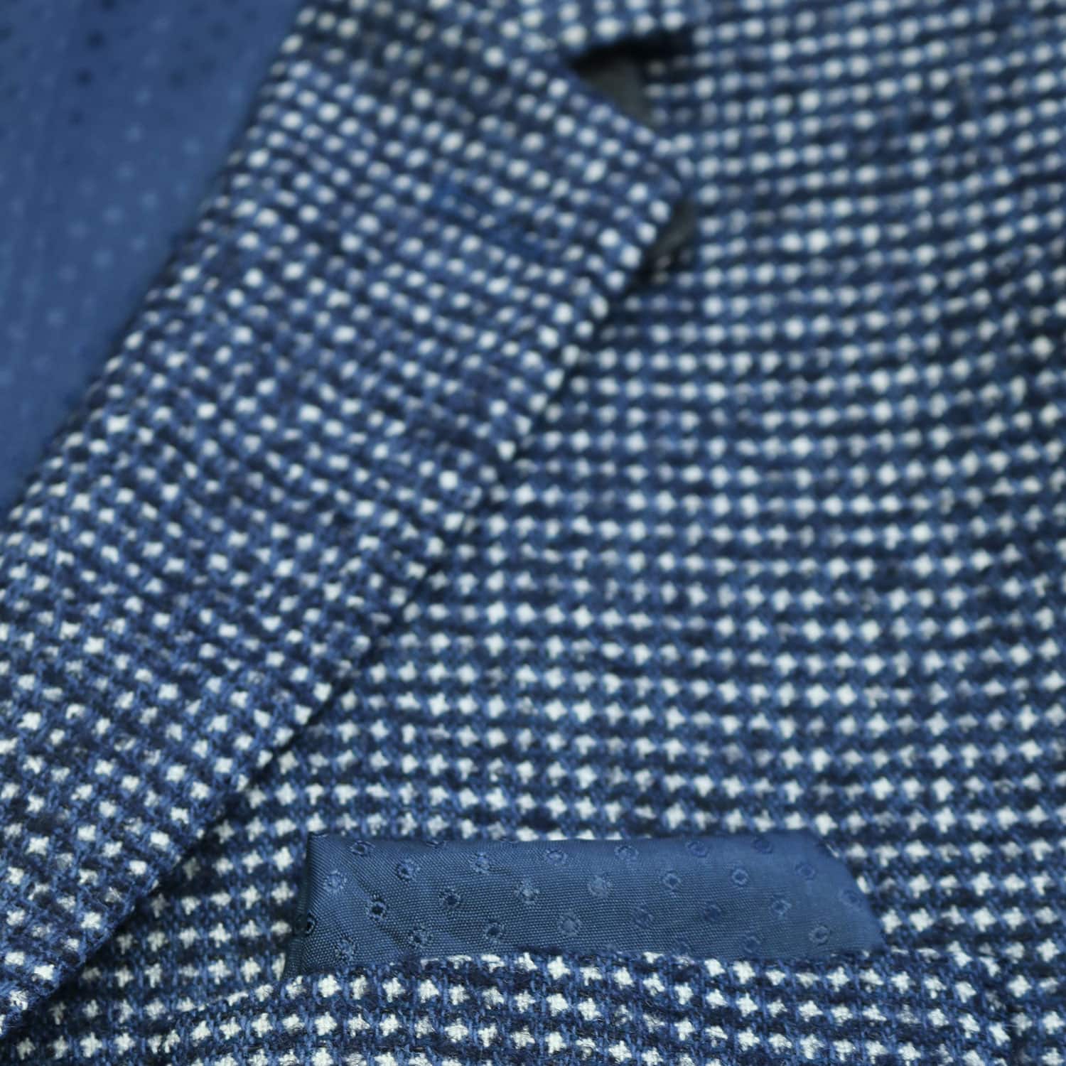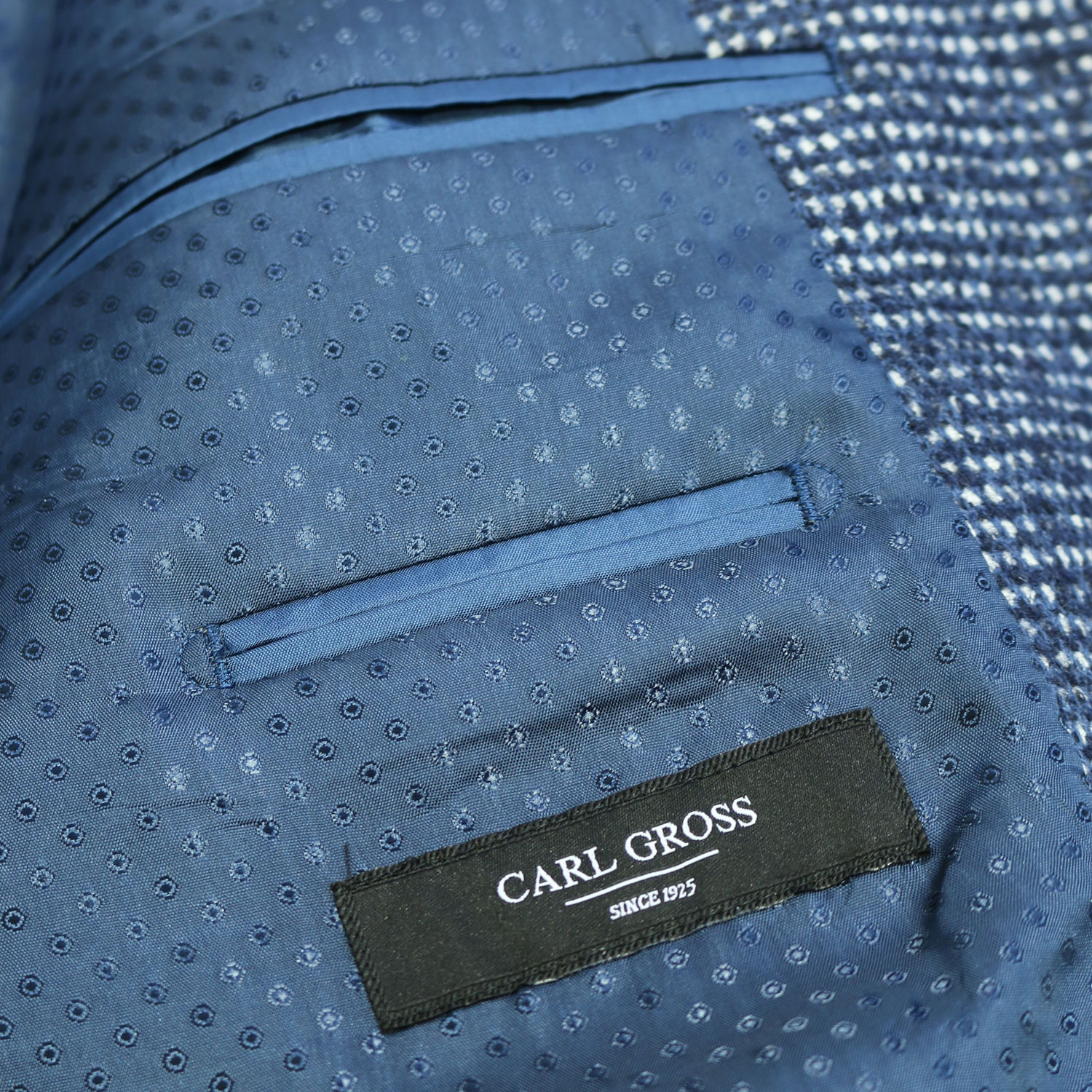 This classic fit navy check jacket from Carl Gross features patch pockets and side vents.