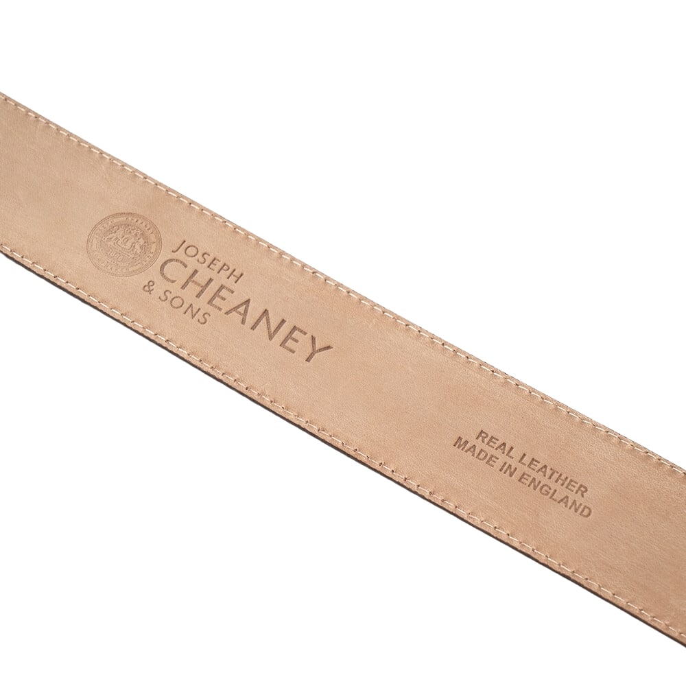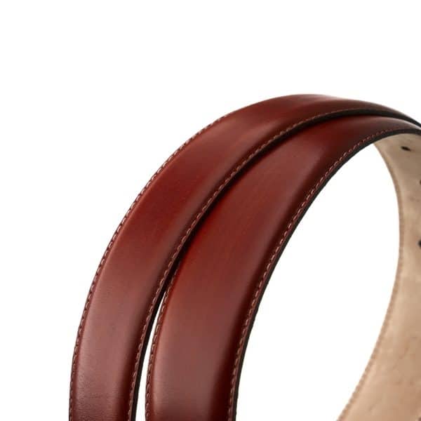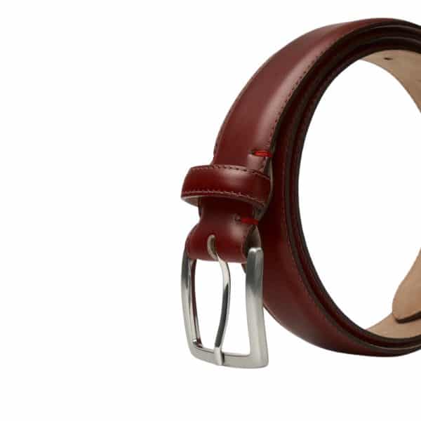 This unique gentleman’s belt is made using the same material as the upper leather of our shoes, giving a near perfect matching look. We achieve this by cutting the leather skin in our Northamptonshire factory, finishing the leather as we would a pair of shoes, before handing them to our bespoke belt manufacturer.