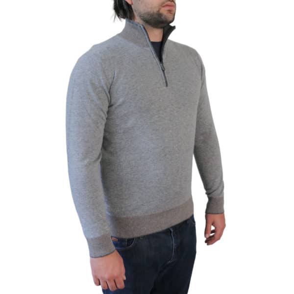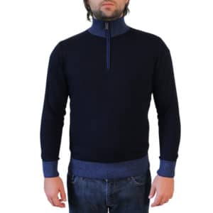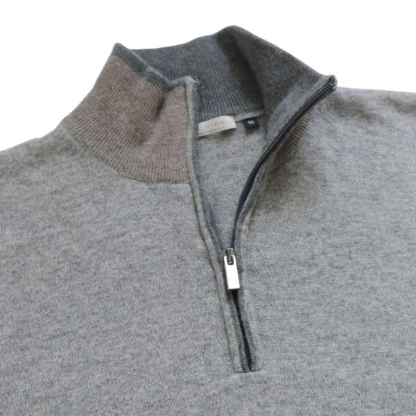 This Codice grey half zip jumper is made from a wool, cashmere technical fibre blend fabric. Features contrast details at the collar and cuffs. This piece works well with our selection of smart pieces such as shirts, as well as being suited to a more casual outfit.