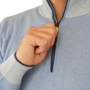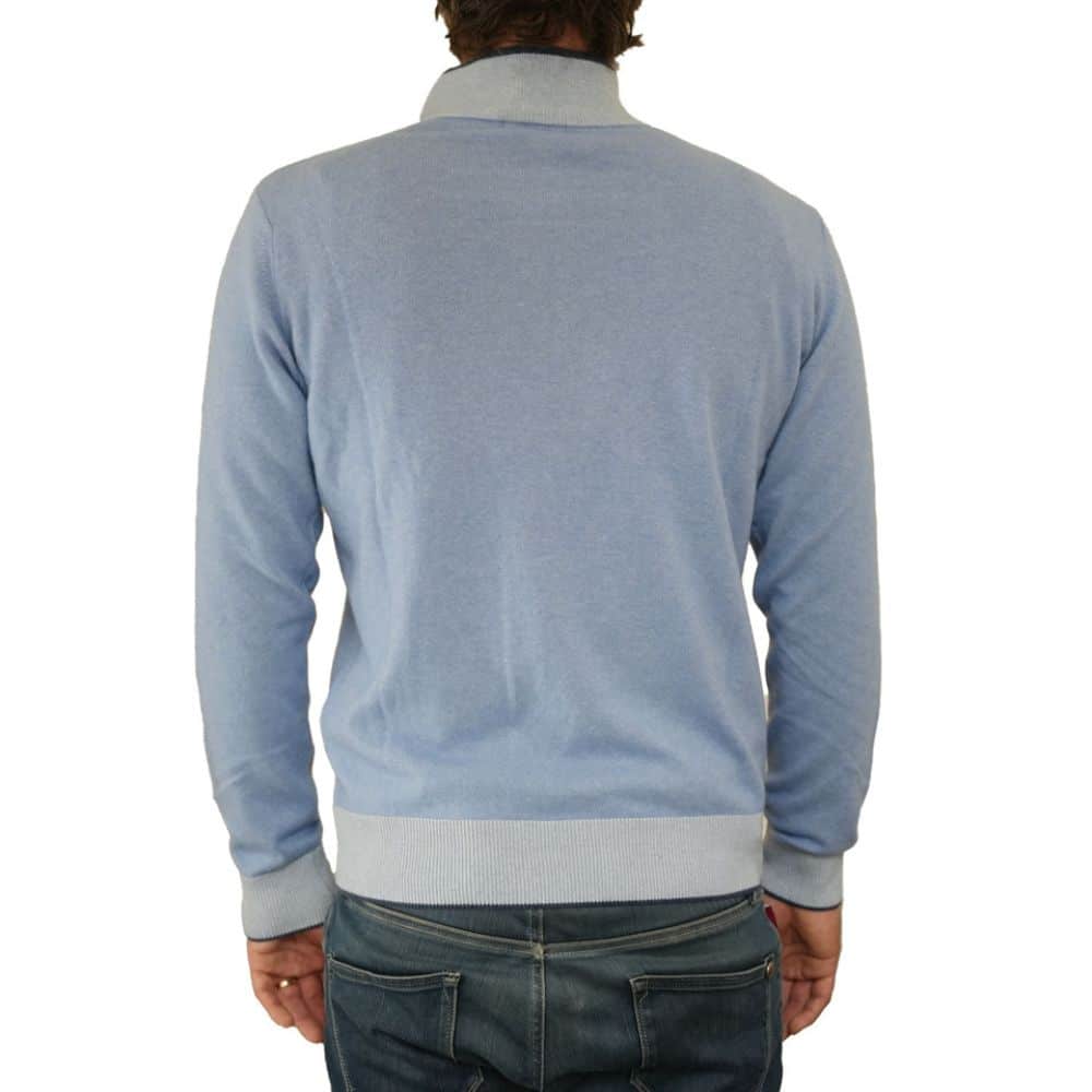 This Codice light blue half zip jumper is made from a wool, cashmere technical fibre blend fabric. Features contrast details at the collar and cuffs. This piece works well with our selection of smart pieces such as shirts, as well as being suited to a more casual outfit.