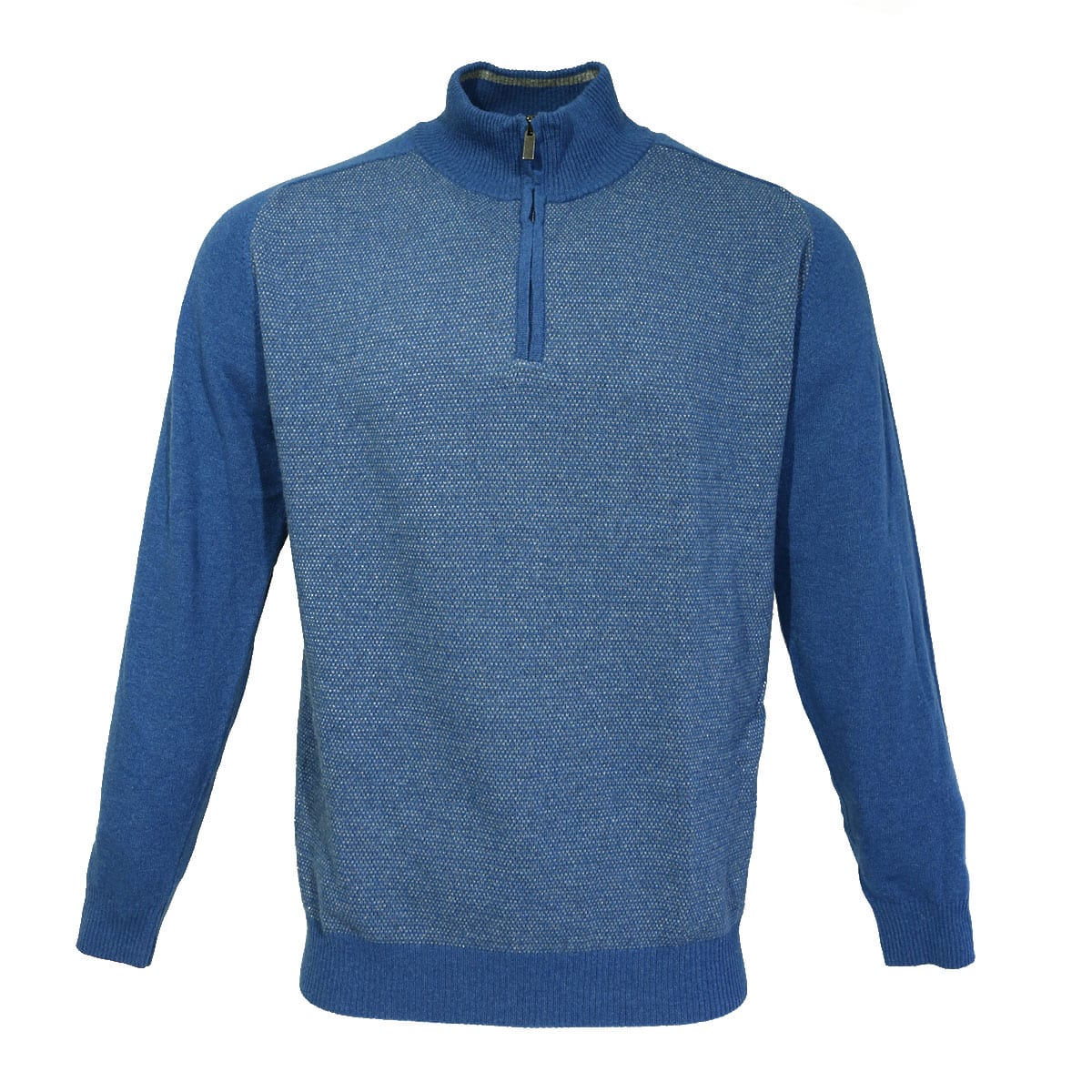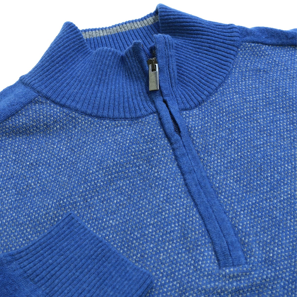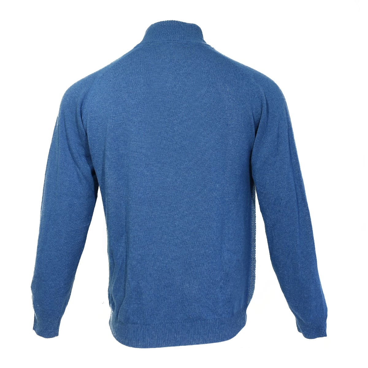 This Codice blue half zip jumper in a wool cashmere blend has a contrasting back and sleeves giving a modern look to a classic and elegant piece of knitwear.