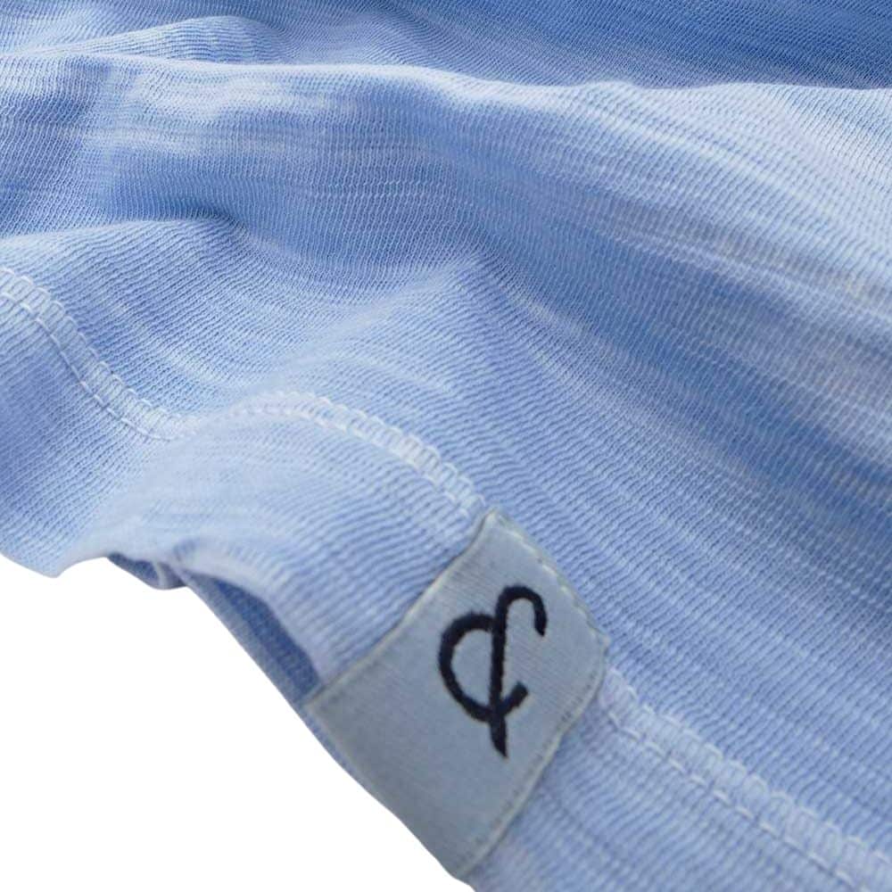 The Colours & Sons Sky Blue V Neck T-shirt is a laid back casual piece that is ready for the hot weather. The fabric has a horizontal weave and a heavy wash for a rugged, sun faded look. The v-neck line has rolled edges for added style. This t-shirt is finished with branding on the left sleeve and at the hem.